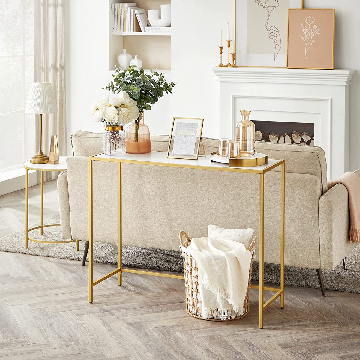 Consoletafel met stalen frame goudwit 100 x 35 x 80 cm