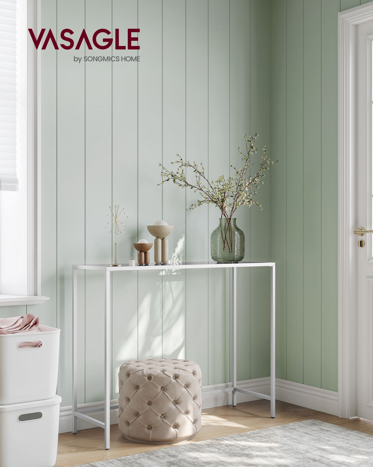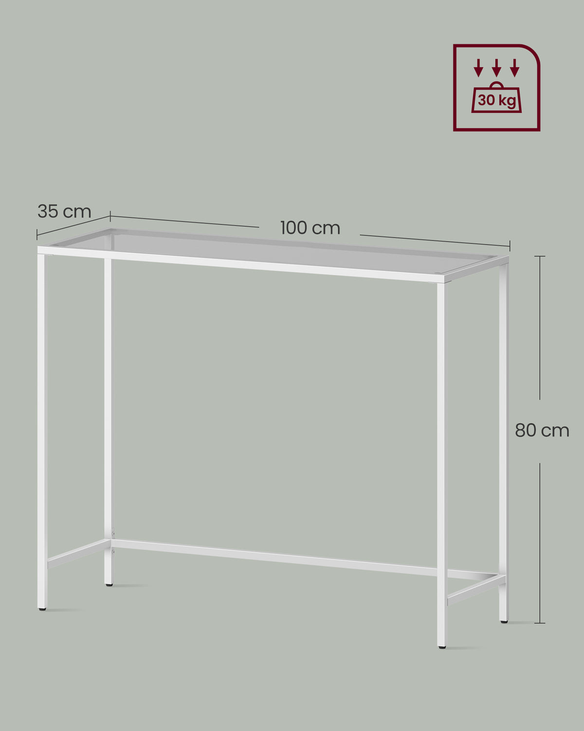 Consoletafelblad van gehard glas in parelwit-leigrijs 35 x 100 x 80 cm - LGT026W01