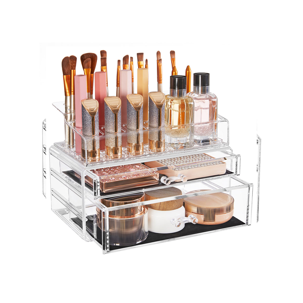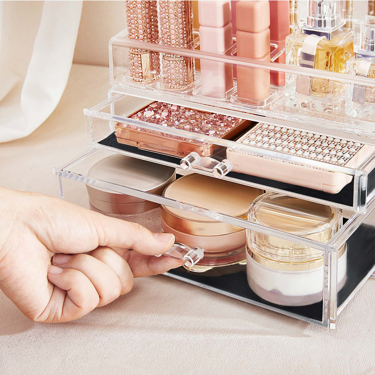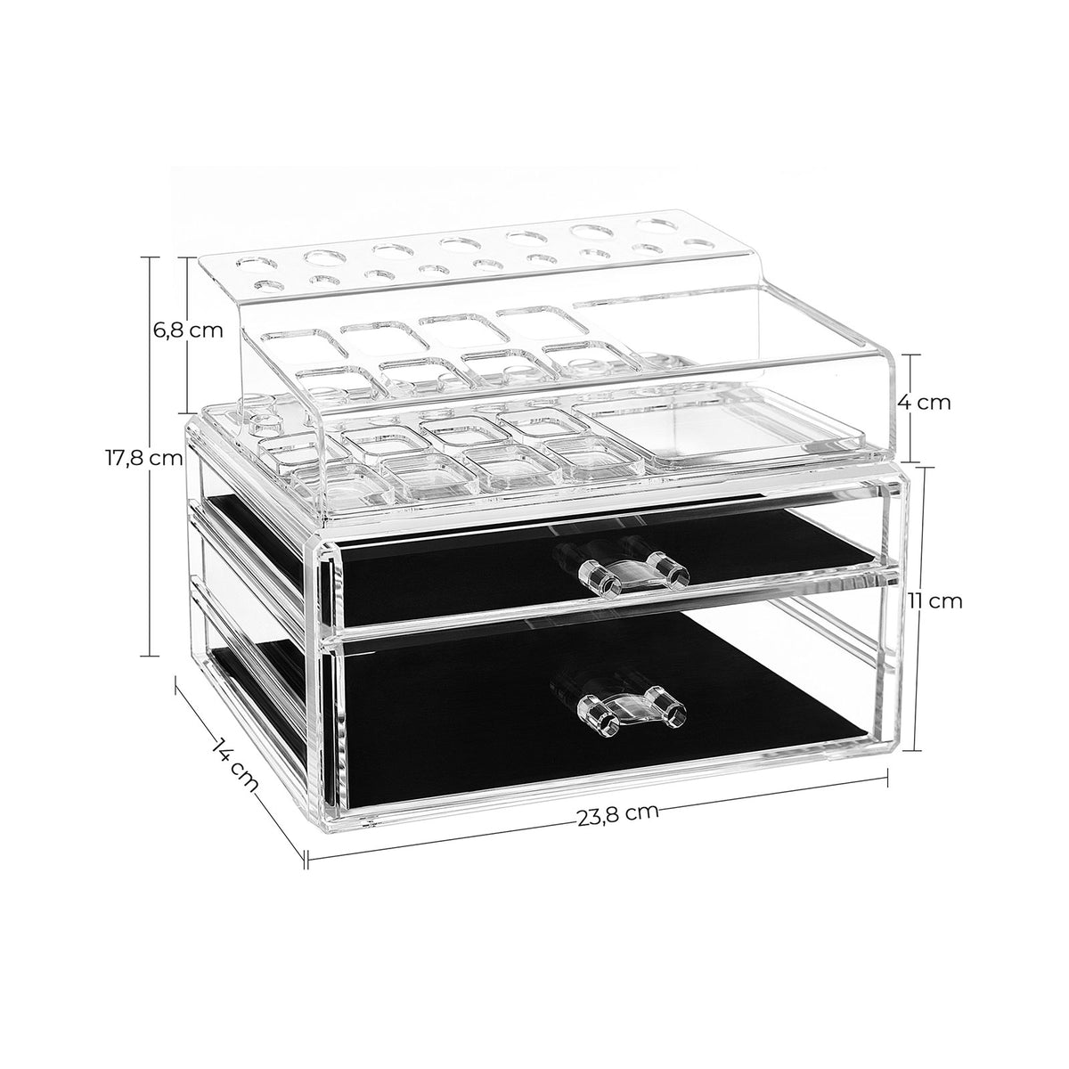 Cosmetische organizer met 2 lades transparant 23,8 x 14 x 17,8 cm