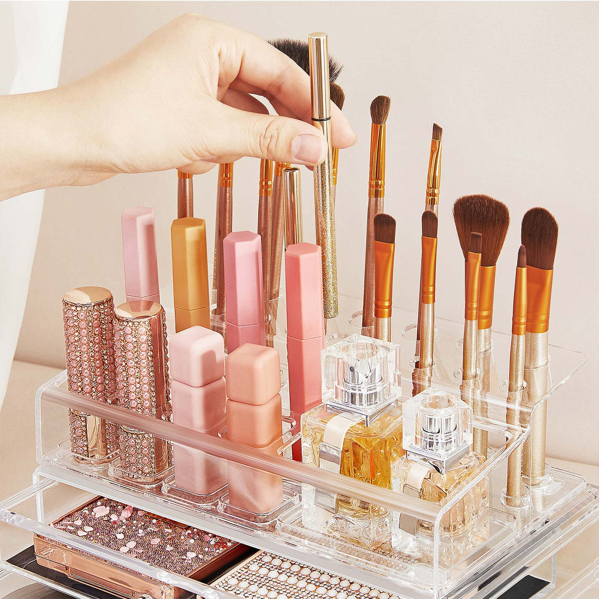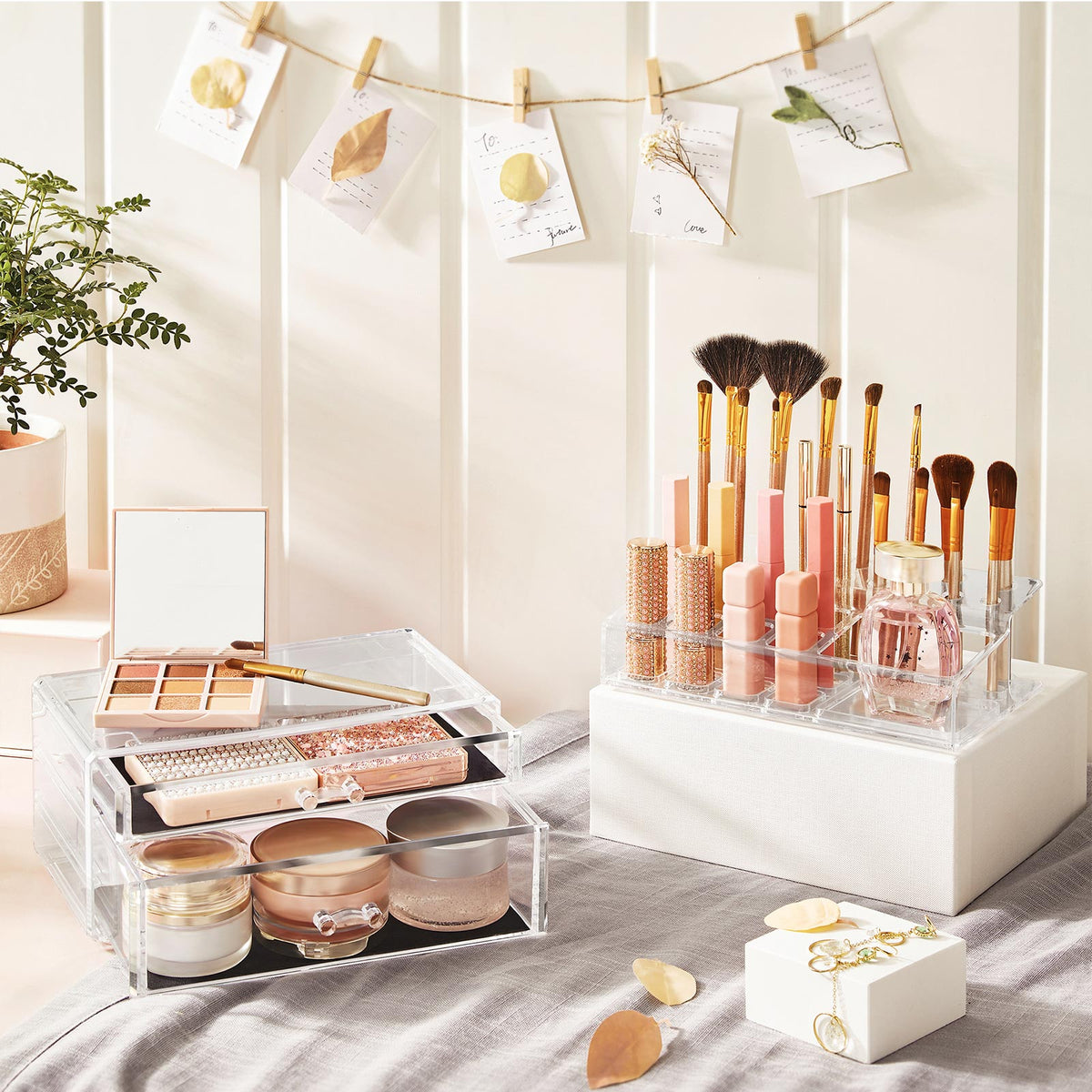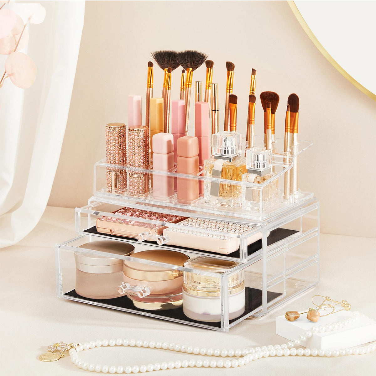 Cosmetische organizer met 2 lades transparant 23,8 x 14 x 17,8 cm