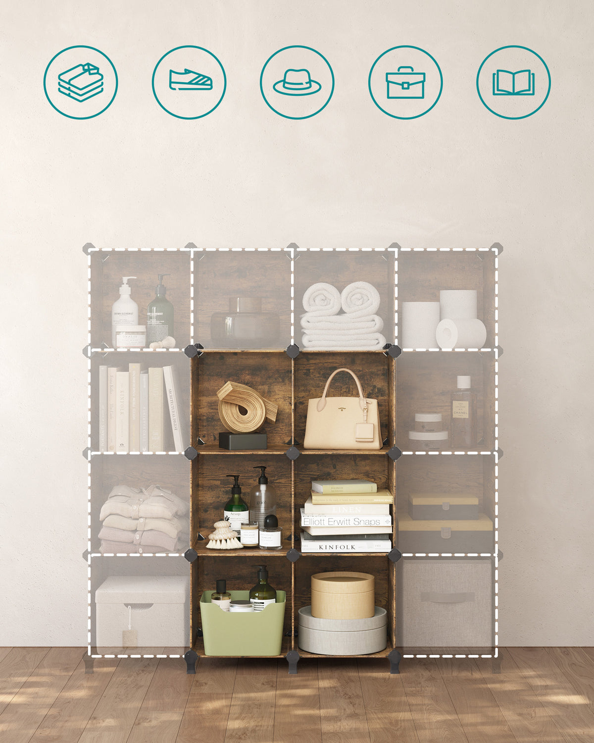 DIY schoenenrek gemaakt van 6 kubussen 31,5 x 64 x 97,2 cm