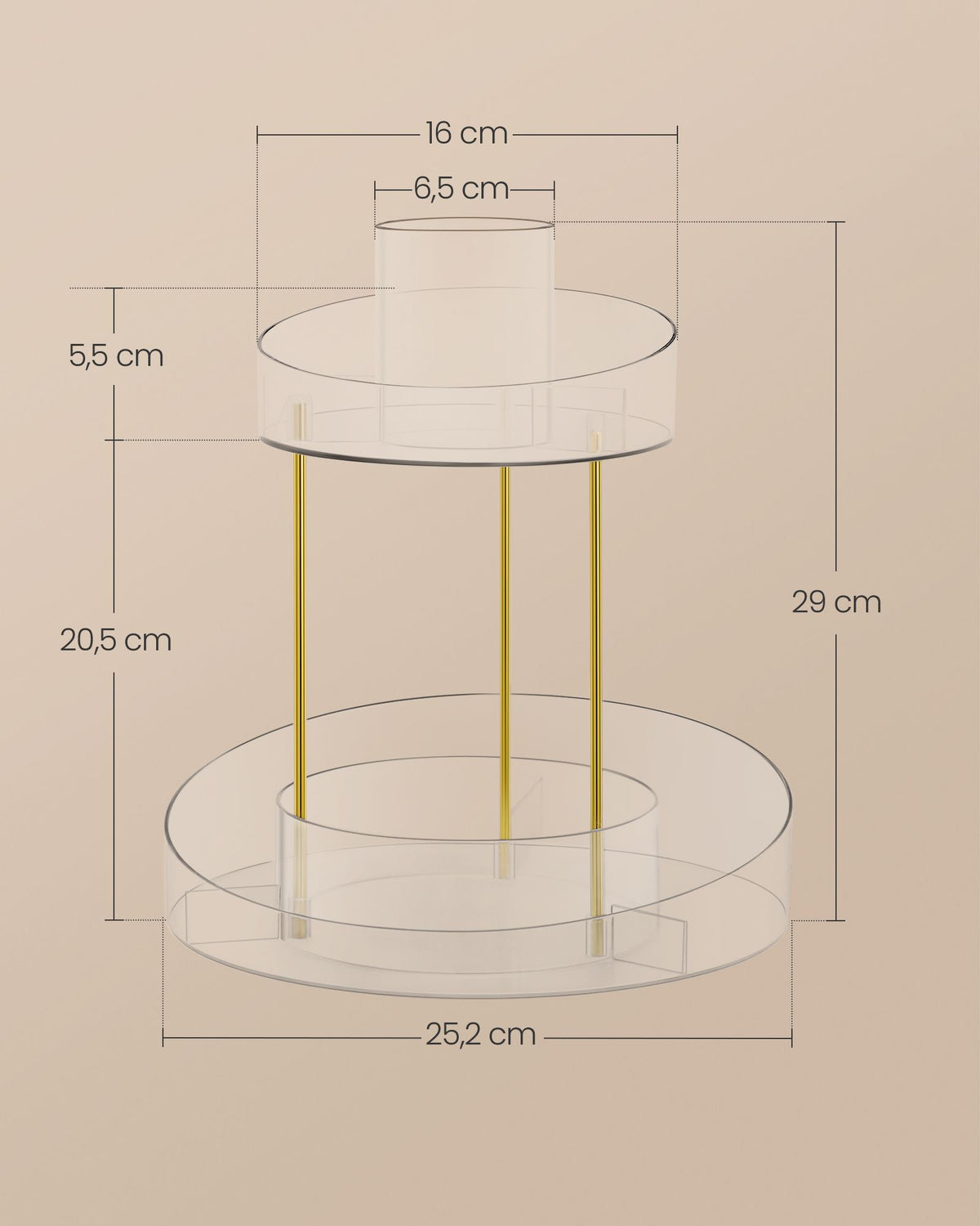 Draaibare make-up organizer met extra transparante lade 2 x 29 cm