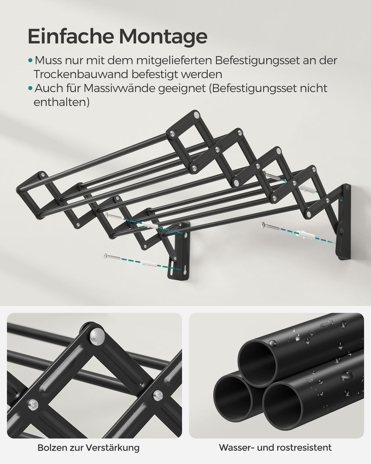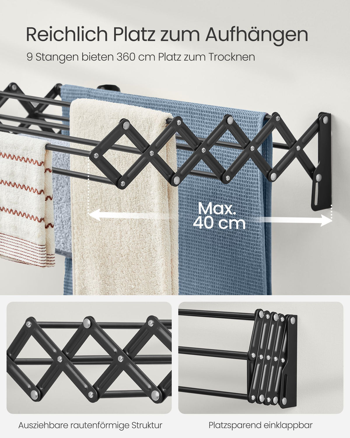 Droogtrommel uitschuifbaar en opvouwbaar inktzwart 40 x 42 x 12 cm