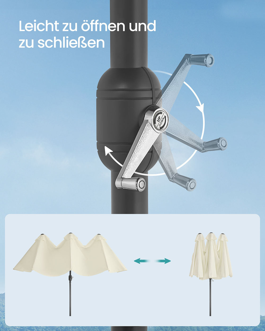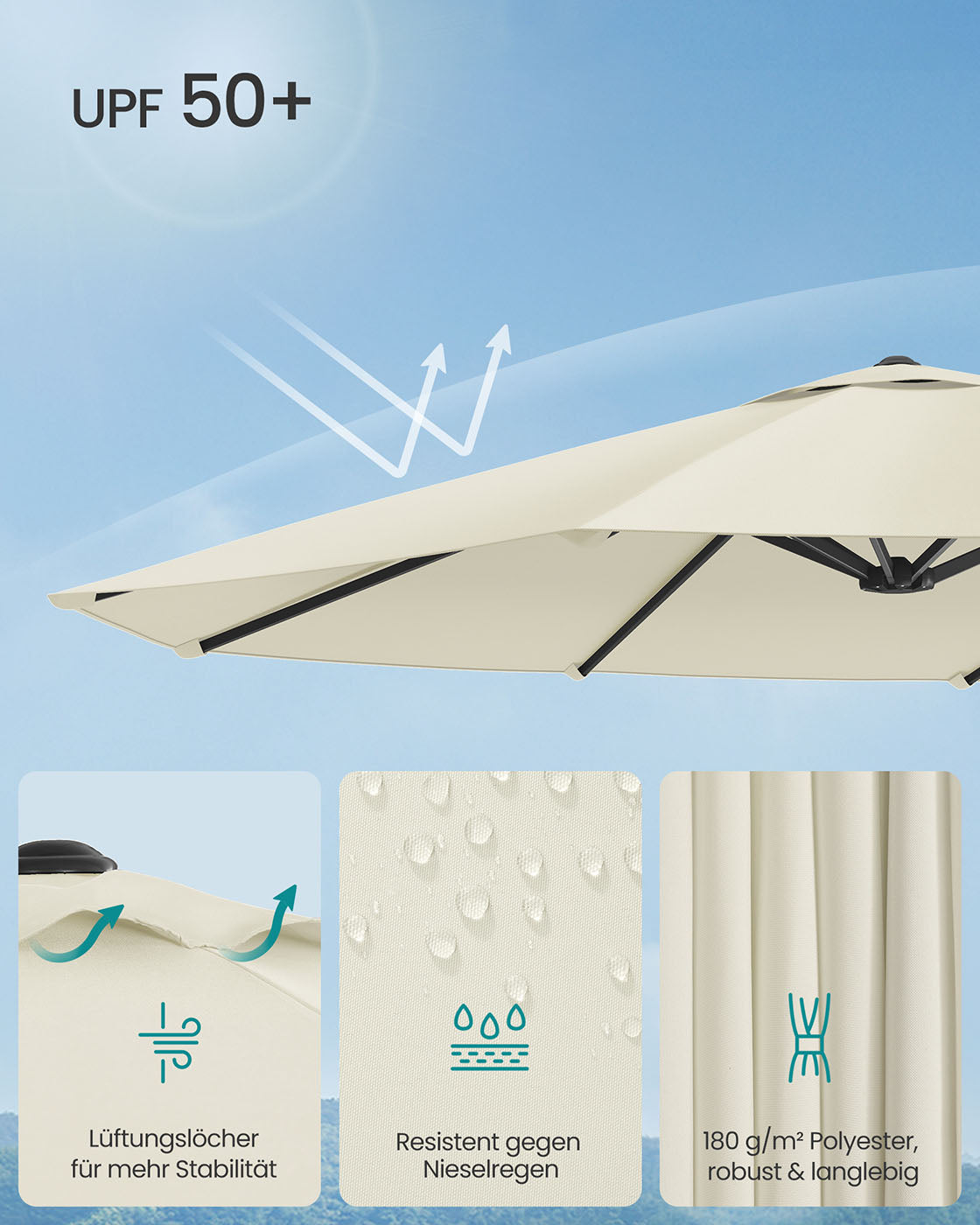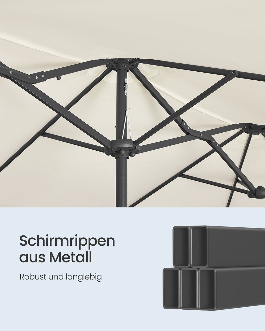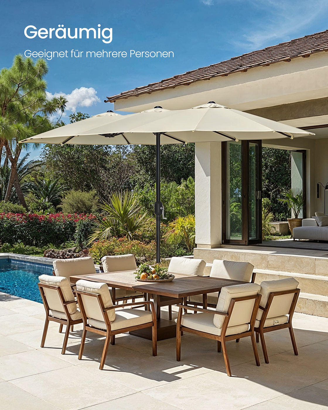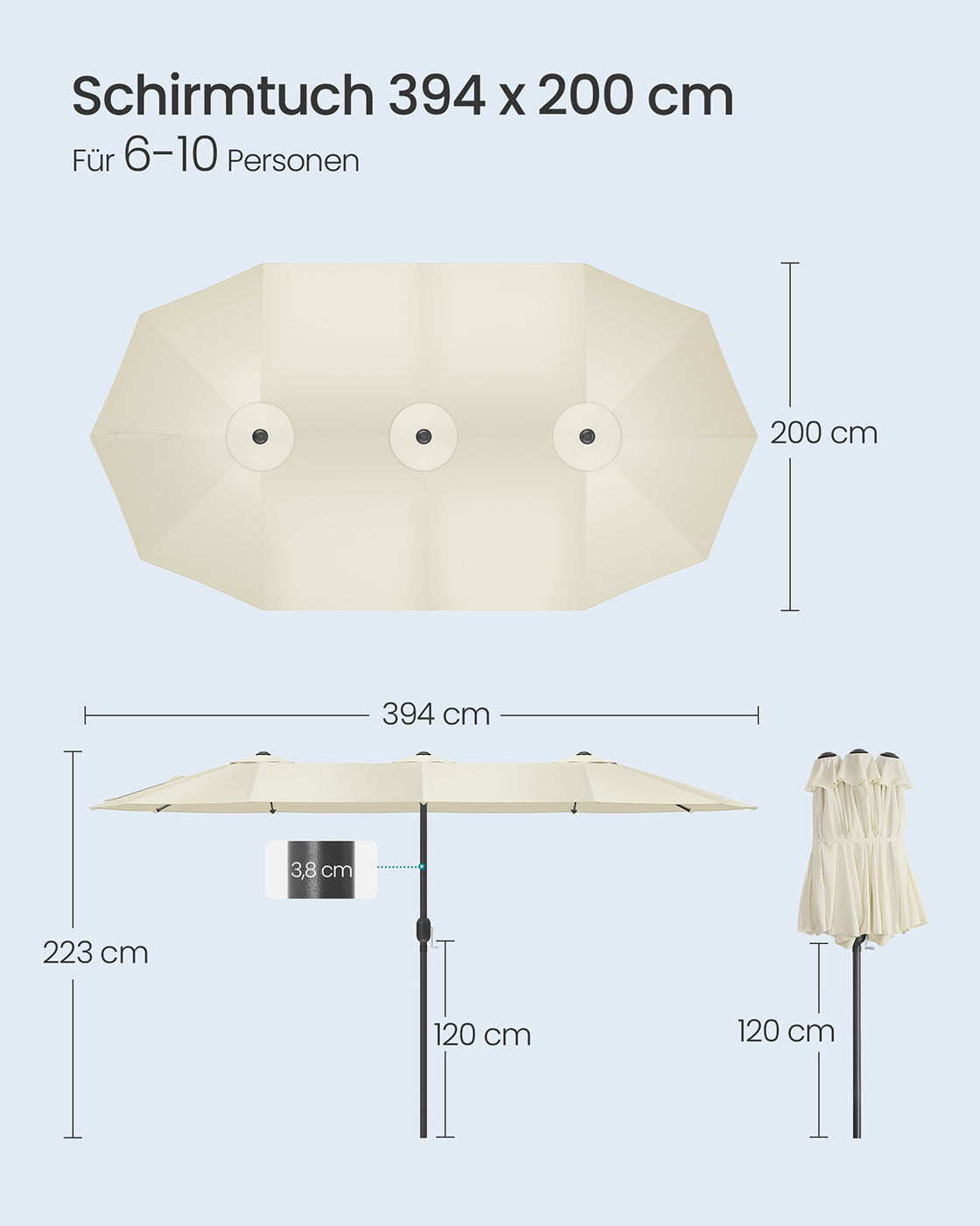 Dubbele parasol 394 x 200 cm UPF 50+ zonder voet beige