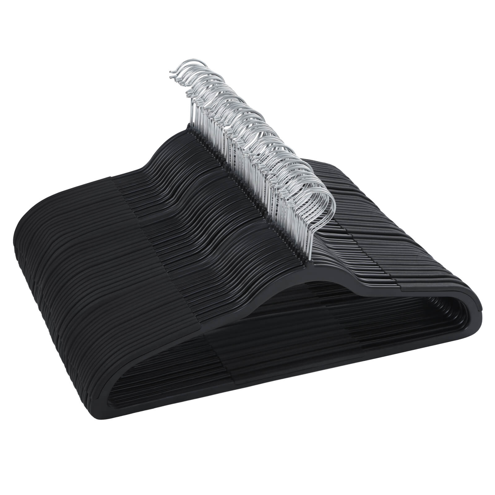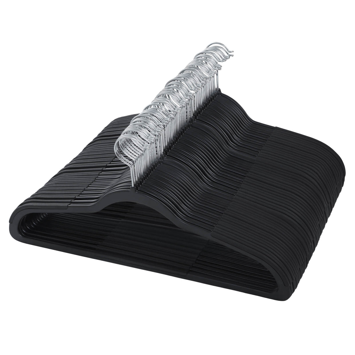 Dunne kunststof hangers 50 stuks zwart 45 x 22 x 0,5 cm