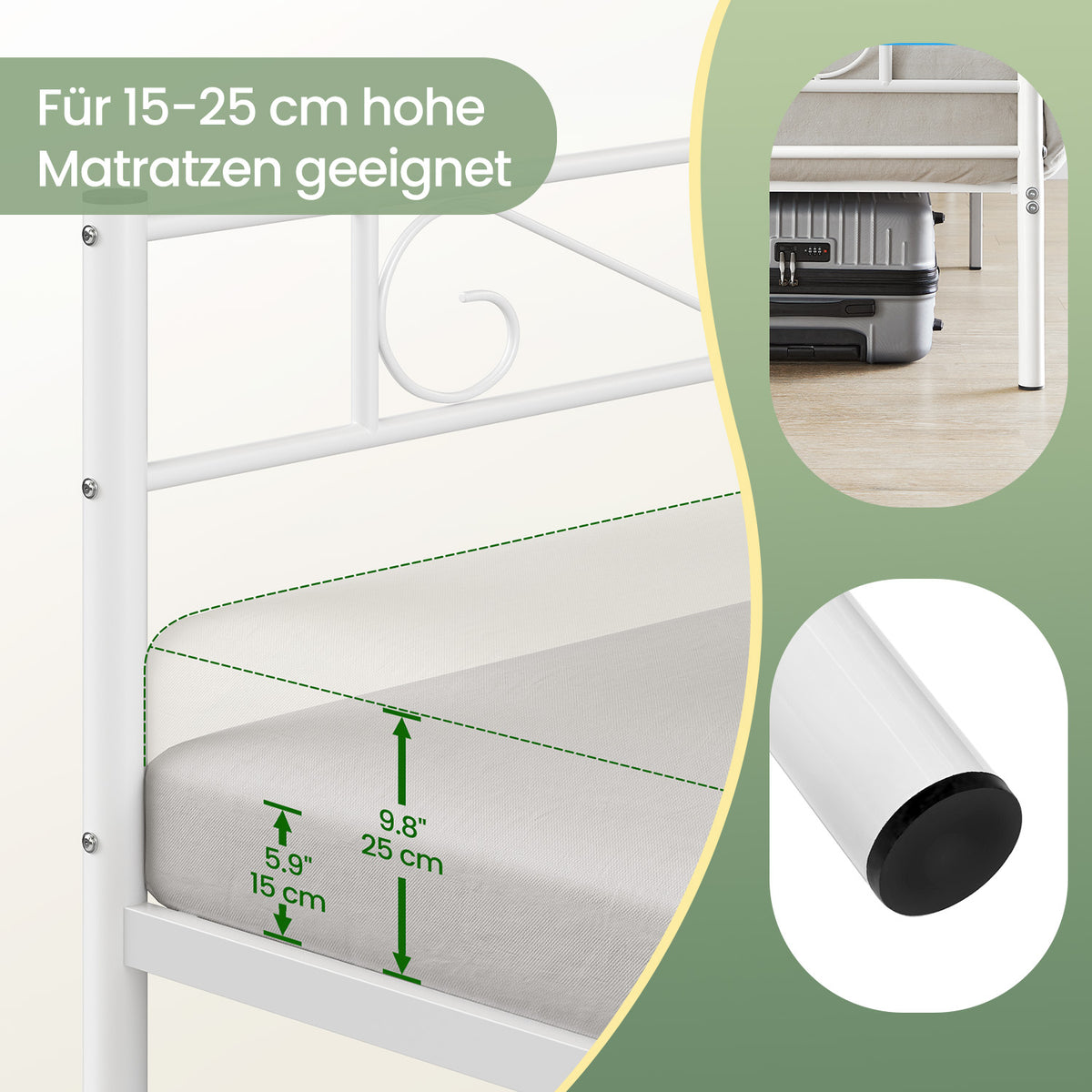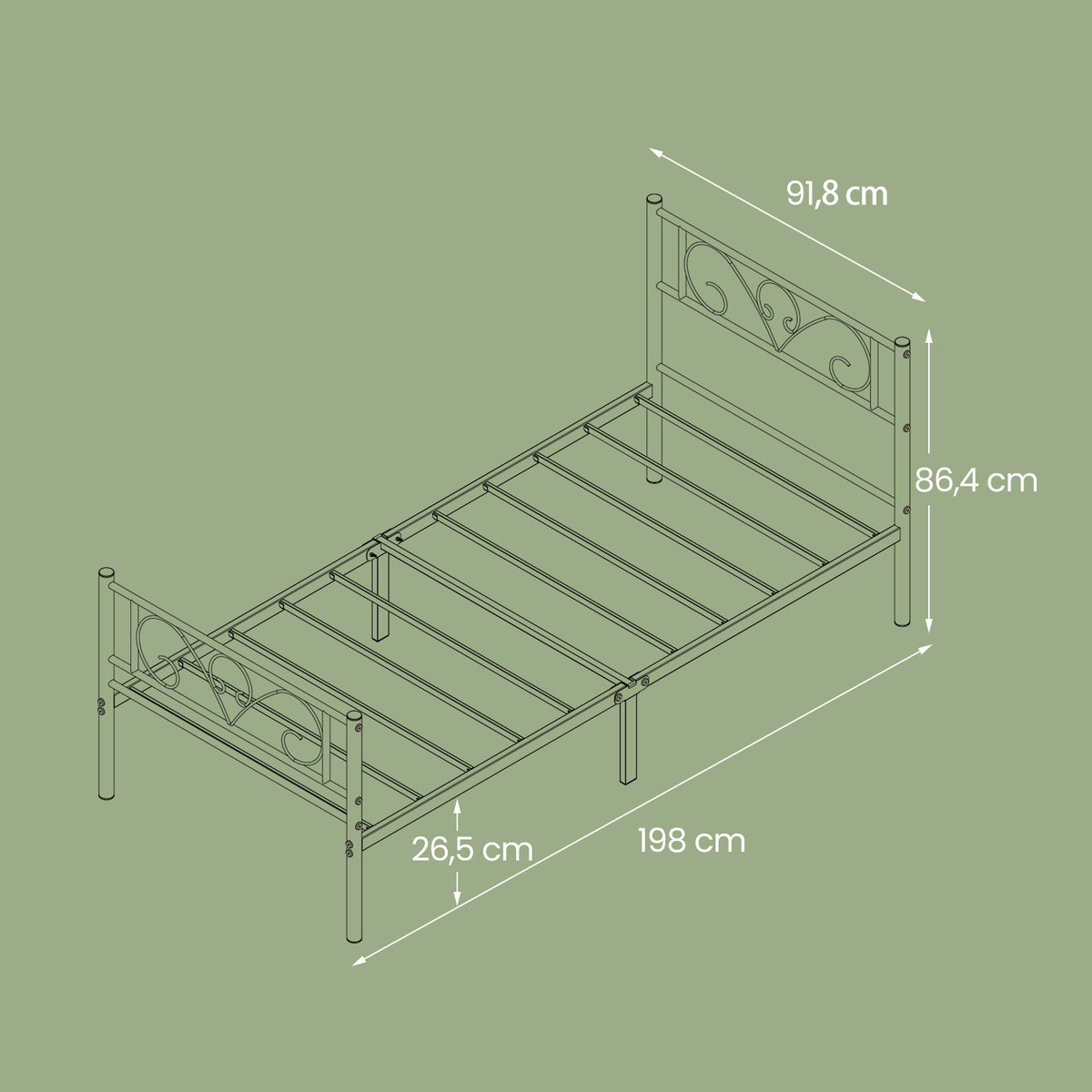Eenpersoonsbedframe van wit metaal 190 x 90 cm