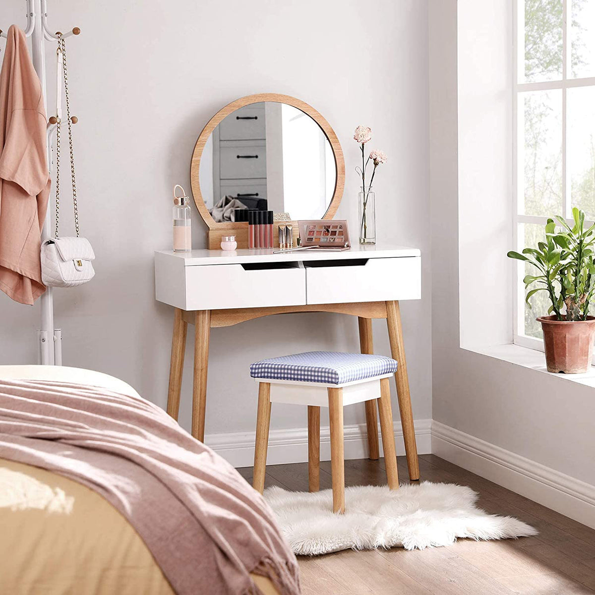 Eenvoudige kaptafel wit-natuur 80 x 128 x 40 cm