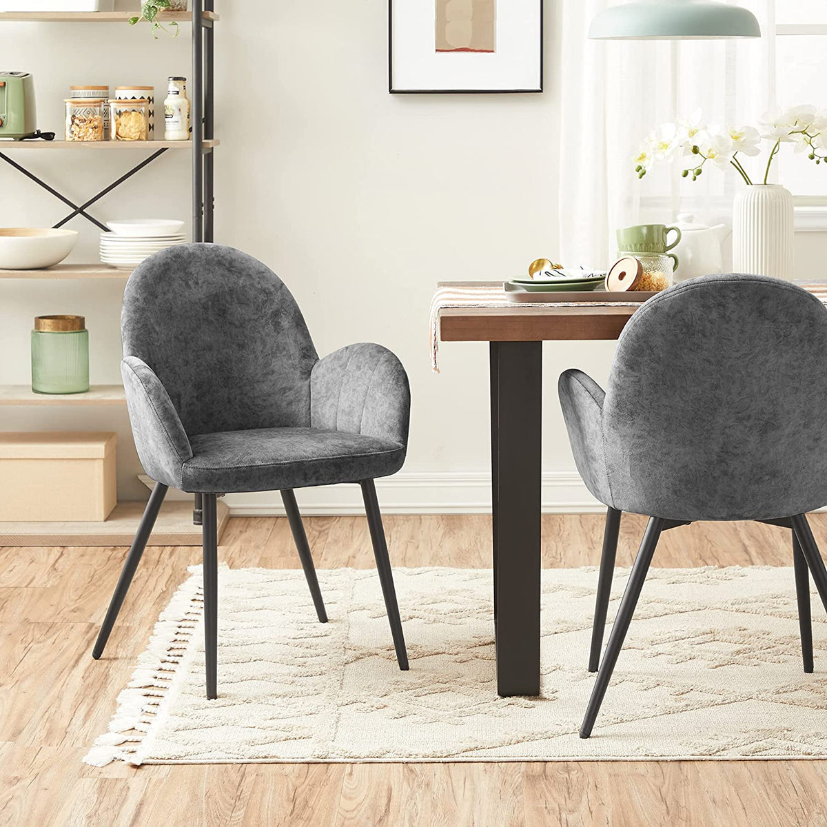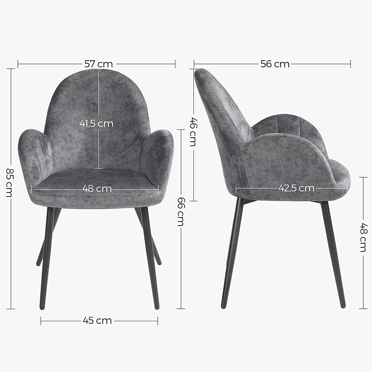 Eetkamerstoel met fluwelen bekleding grijs 48 cm