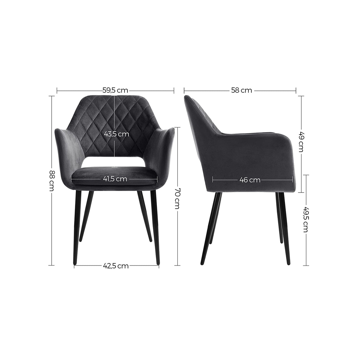 Eetkamerstoel met fluwelen bekleding grijs 59,5 x 58 x 88 cm