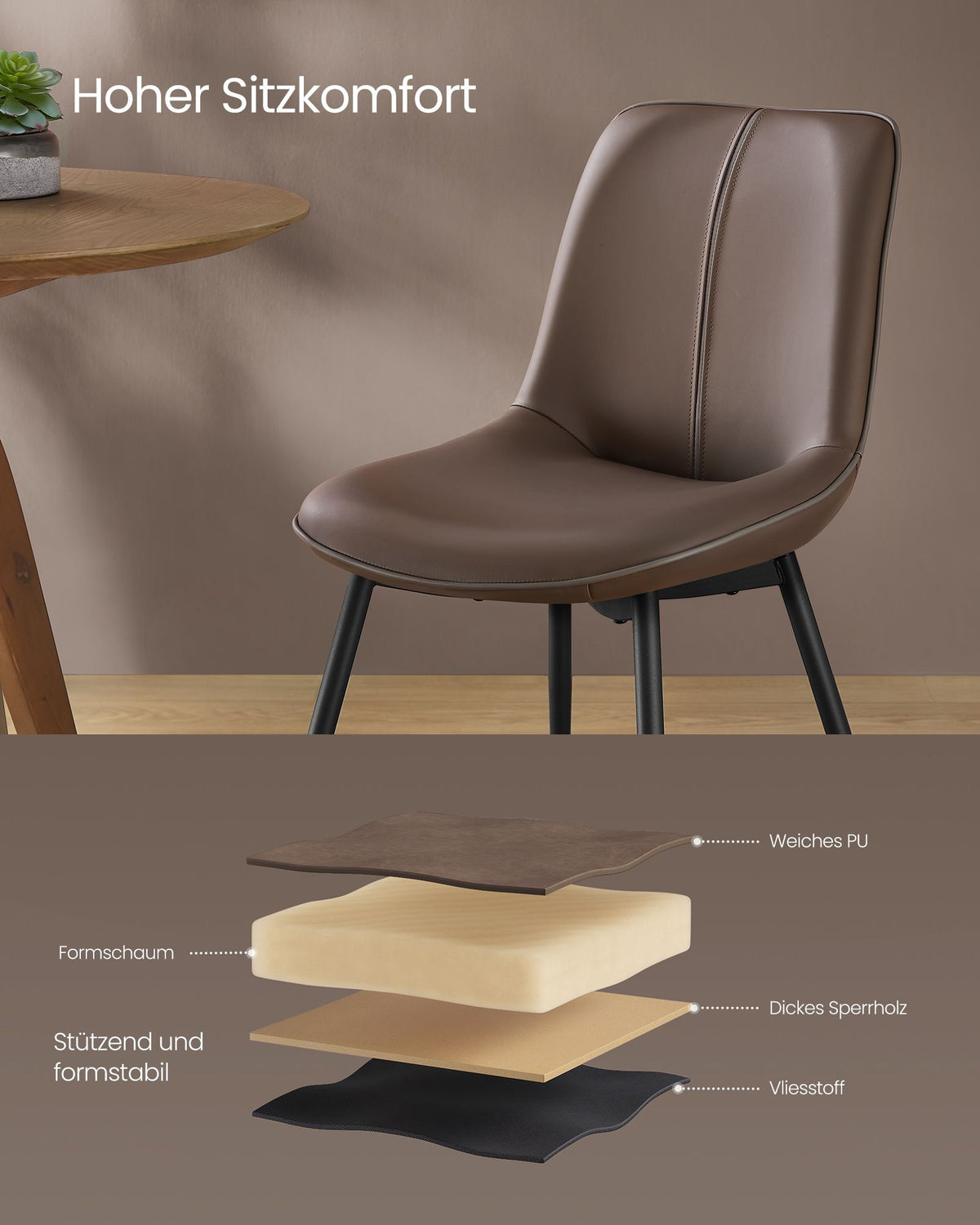 Eetkamerstoel met rugleuning kastanjebruin 3 x 81 cm