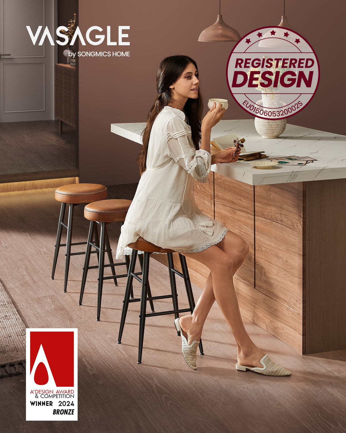 EKHO Collectie - Barkruk eenvoudige montage karamelbruin 2 cm