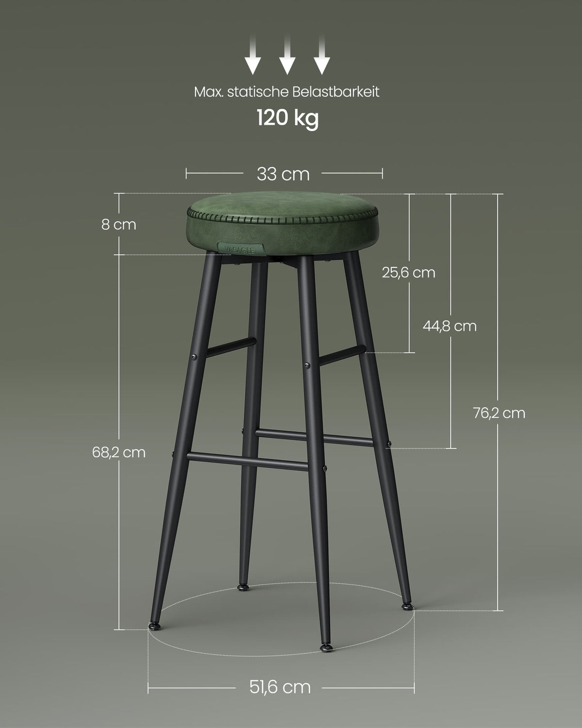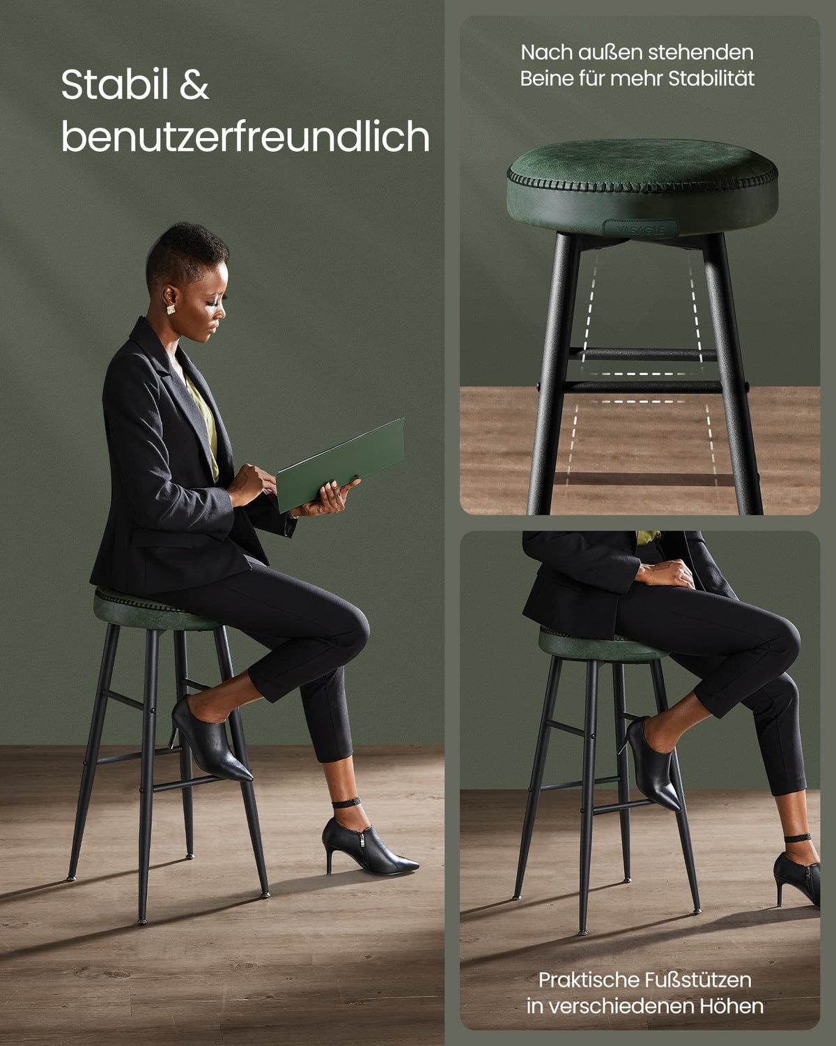 EKHO Collectie - Barkruk set van 2, eenvoudige montage, bosgroen 2 cm - B34LBC090C01V1