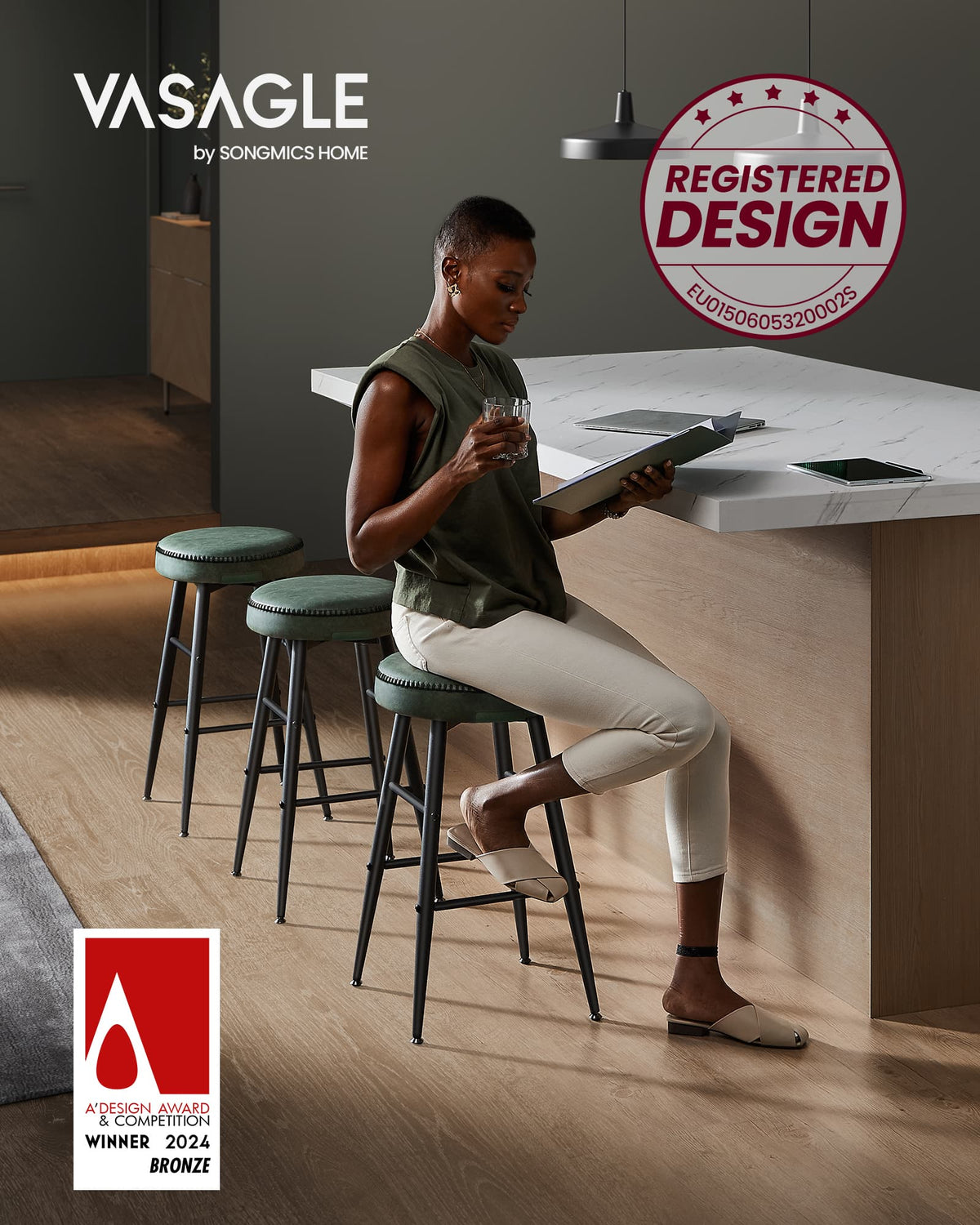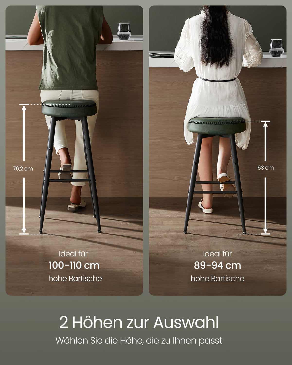 EKHO Collectie - Barkruk set van 2, eenvoudige montage, bosgroen 2 cm - B34LBC080C01V1