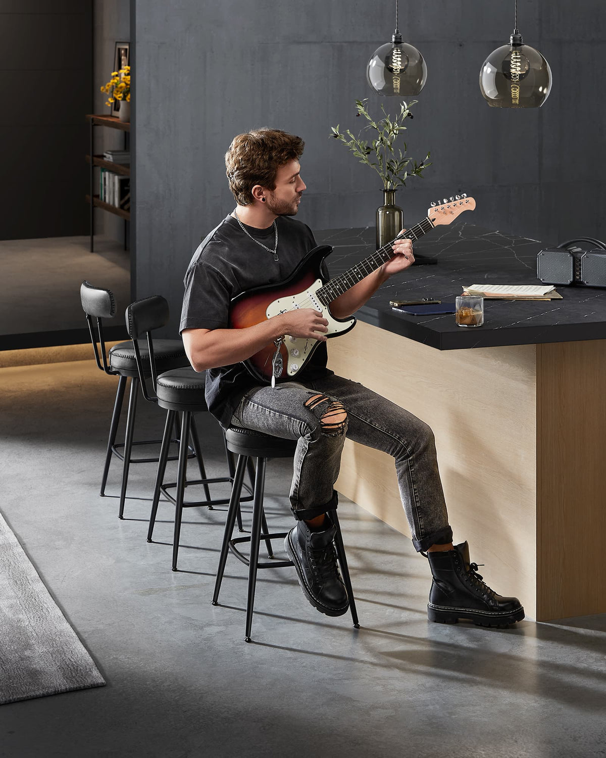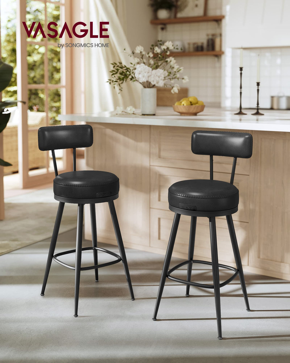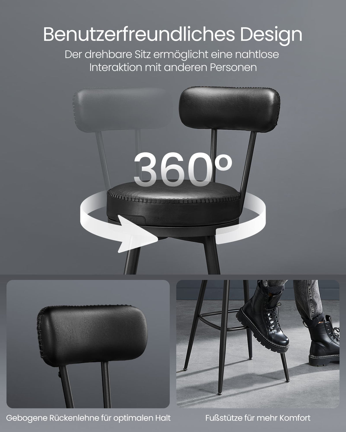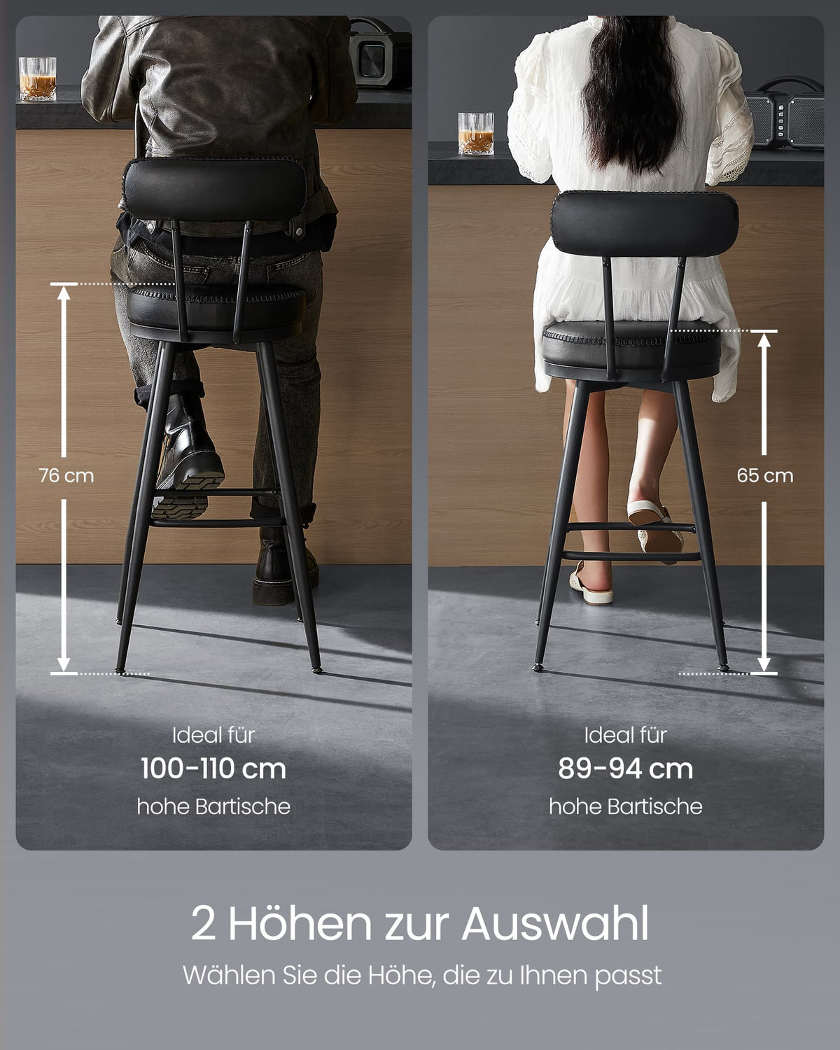 EKHO Collectie - Barkrukken set van 2 van imitatieleer inktzwart 65 cm