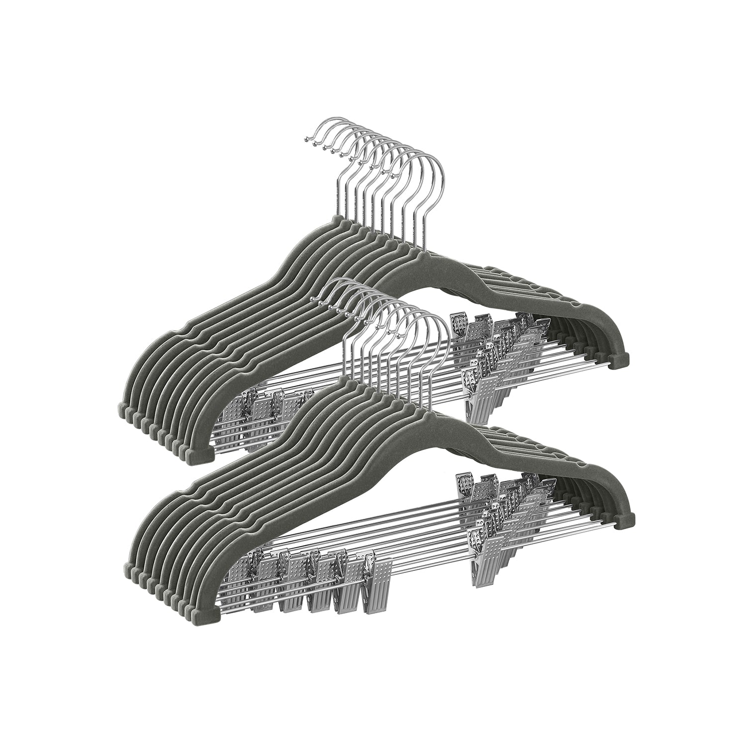 Fluwelen hangers set van 20 met verstelbare grijze 5 cm
