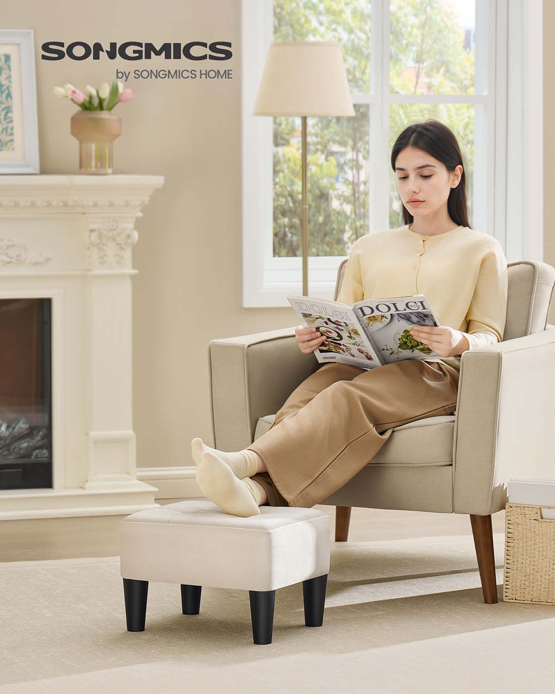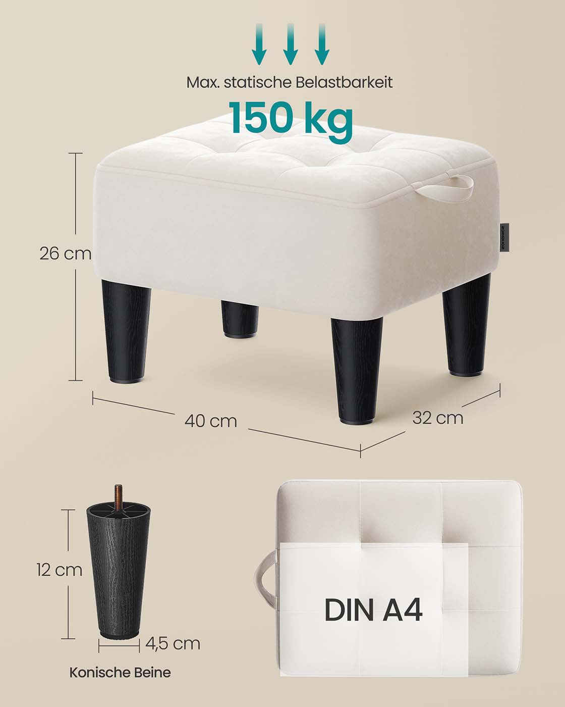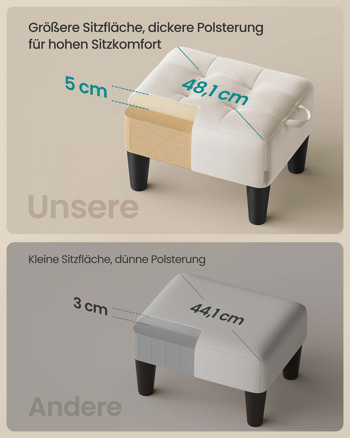 Fluwelen kruk met dikke bekleding in cappuccinobeige en inktzwart 40 x 32 x 26 cm