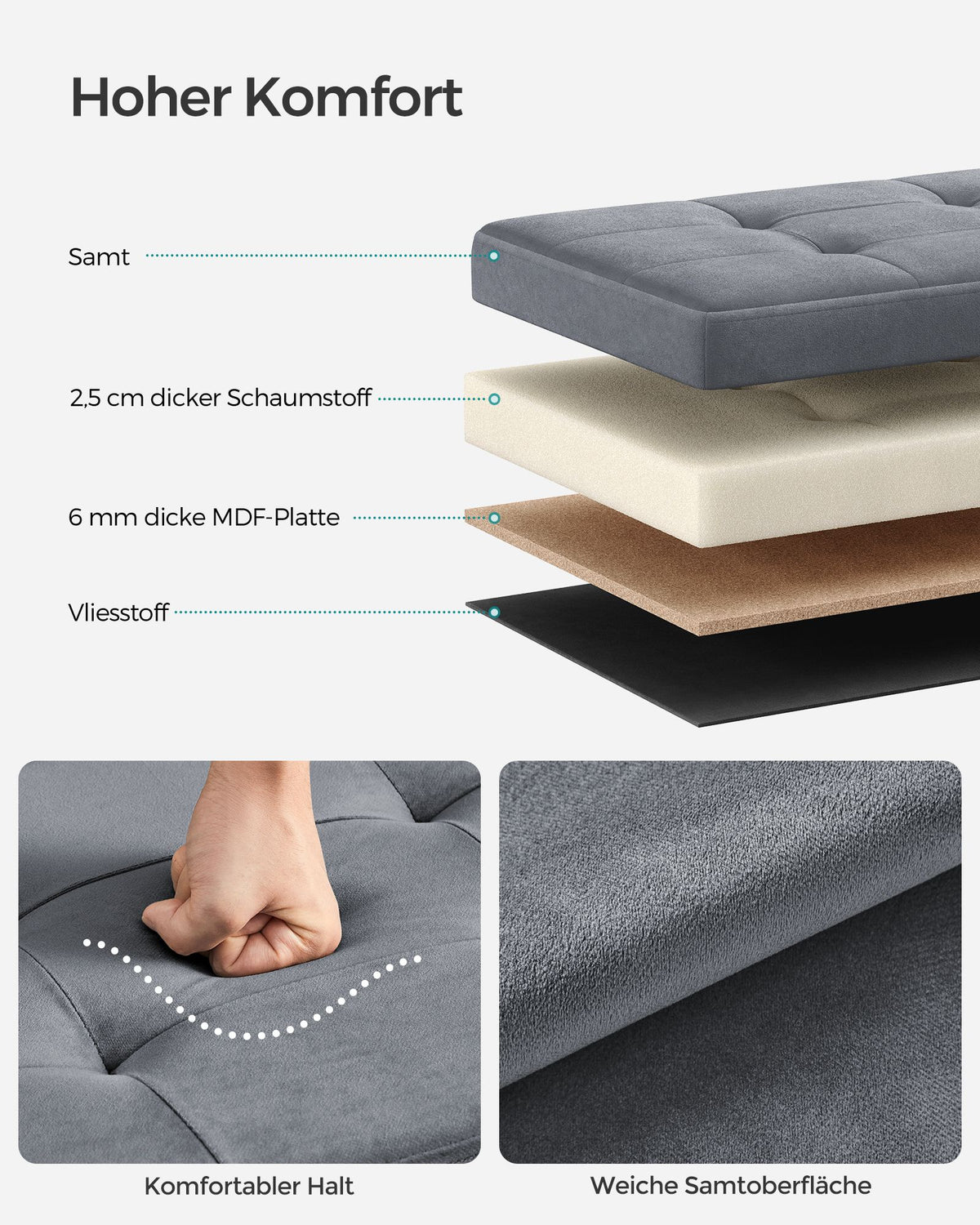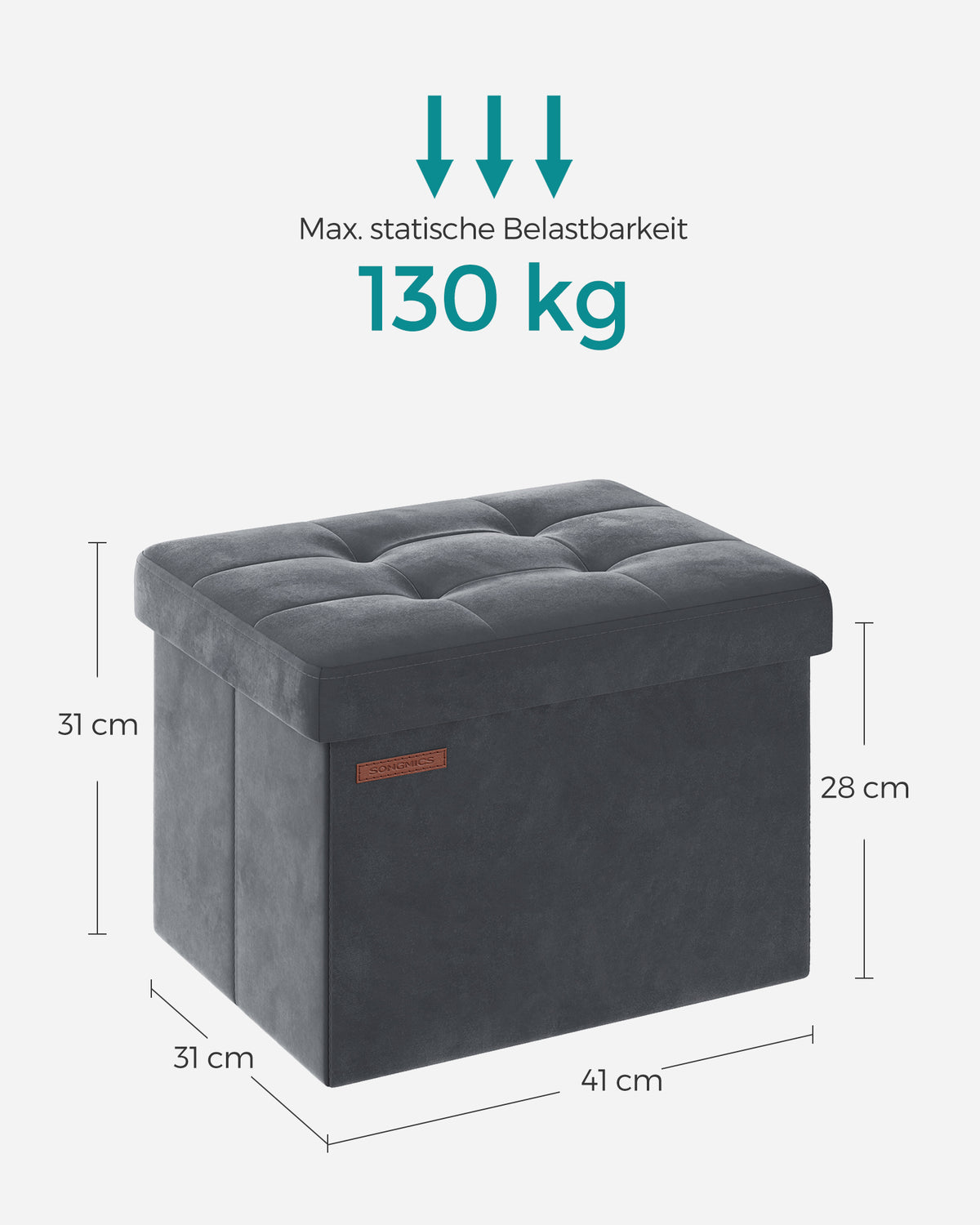 Fluwelen opbergbank voor in de hal, leigrijs 31 x 41 x 31 cm