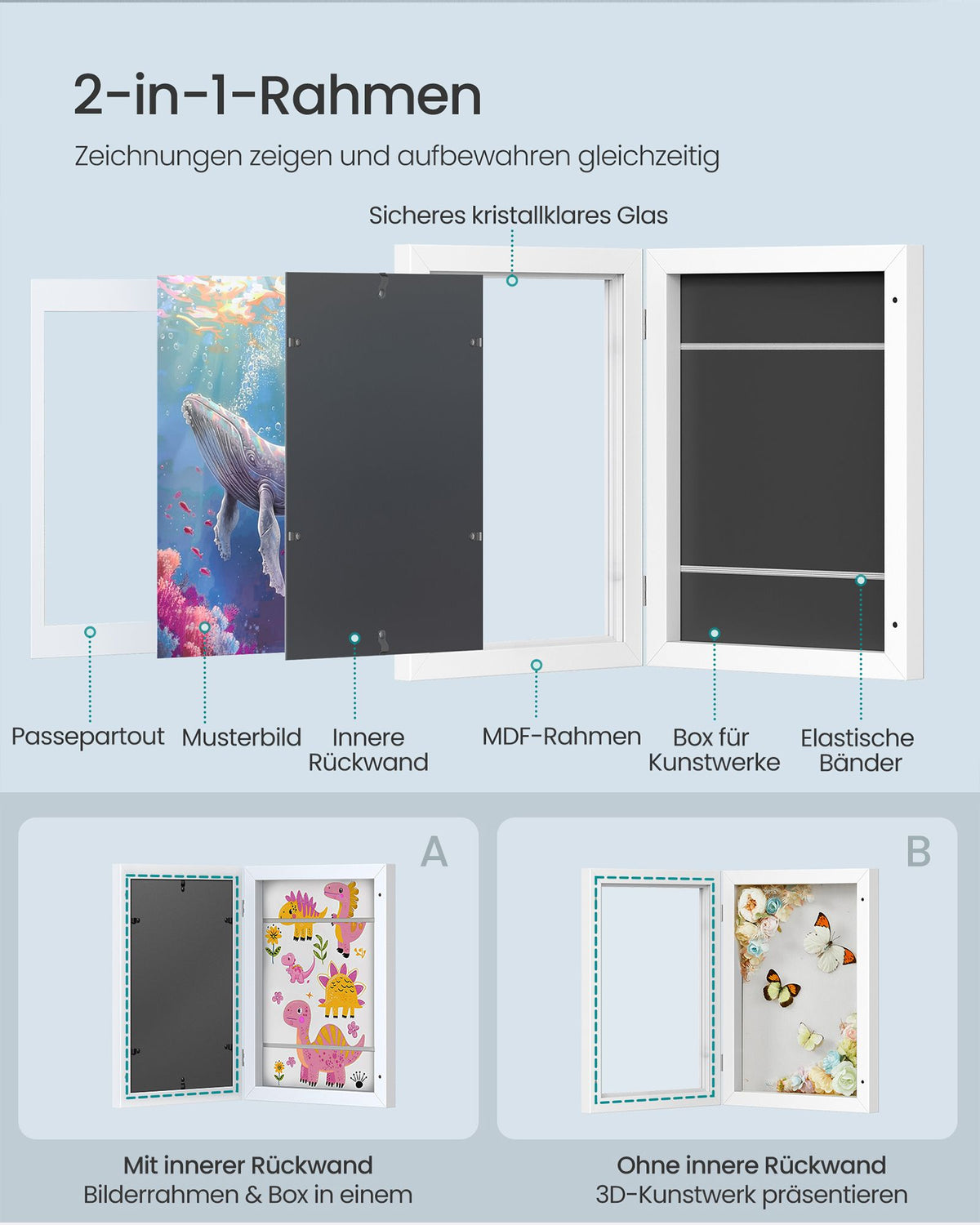 Fotolijstset van 2 met traceless wandhaken 34,5 x 25,5 cm mat wit