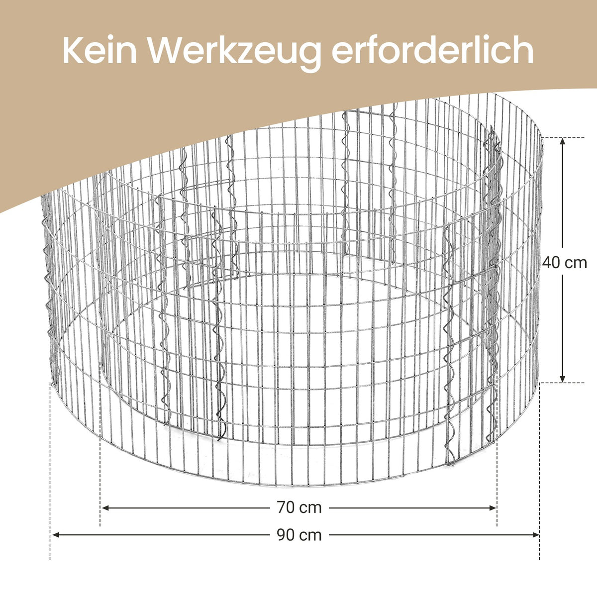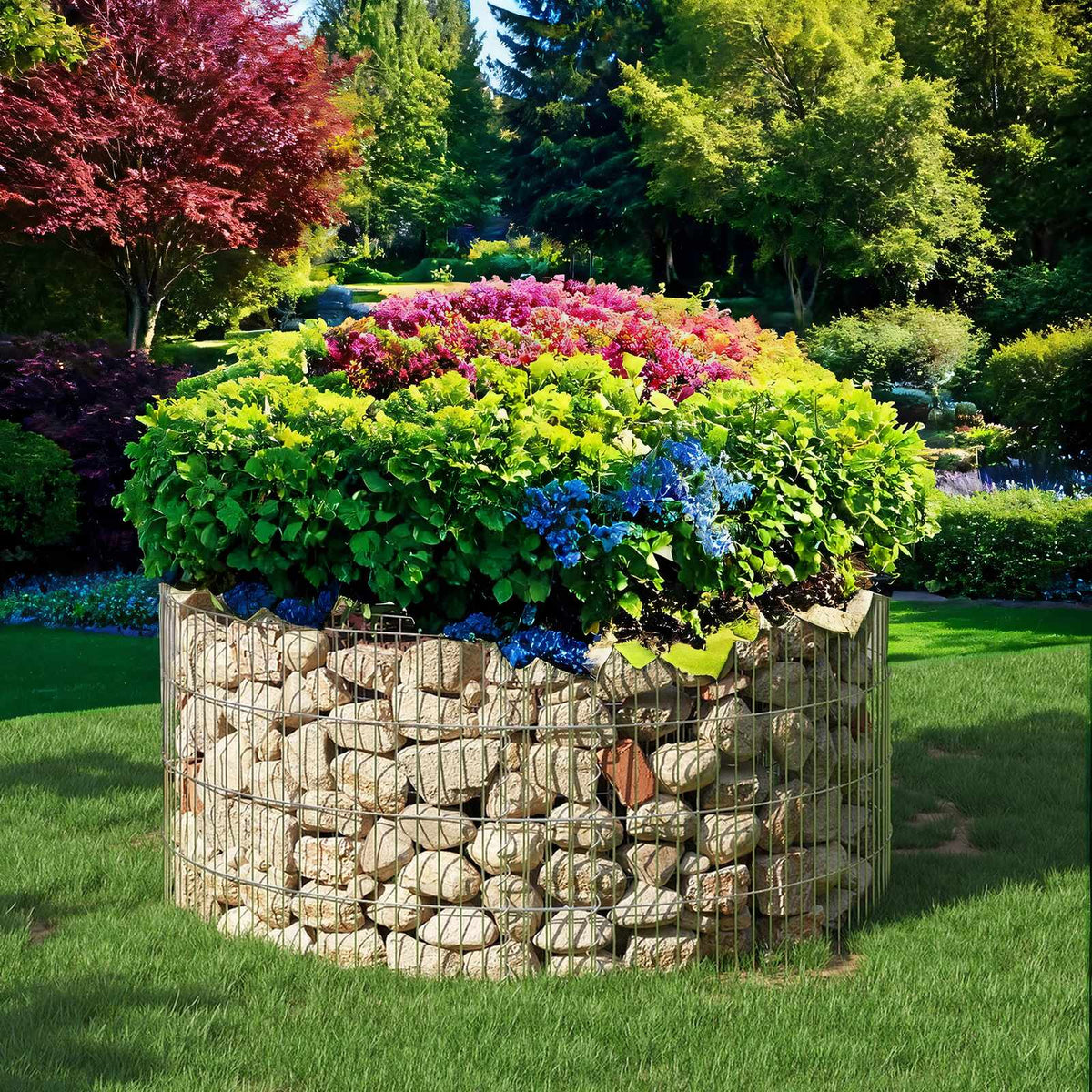 Gabion van metaal, rond, gabionmand 5 x 10 cm