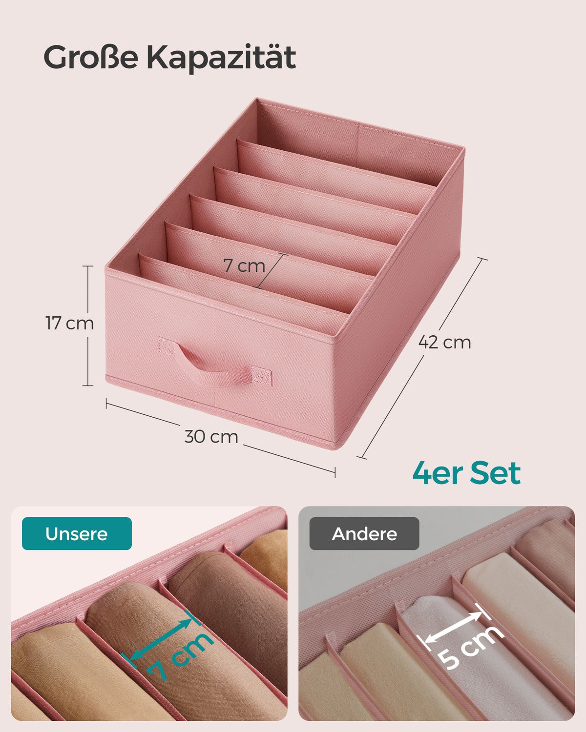 Garderobekast organizer set van 4, 42 x 30 x 17 cm, pastelroze