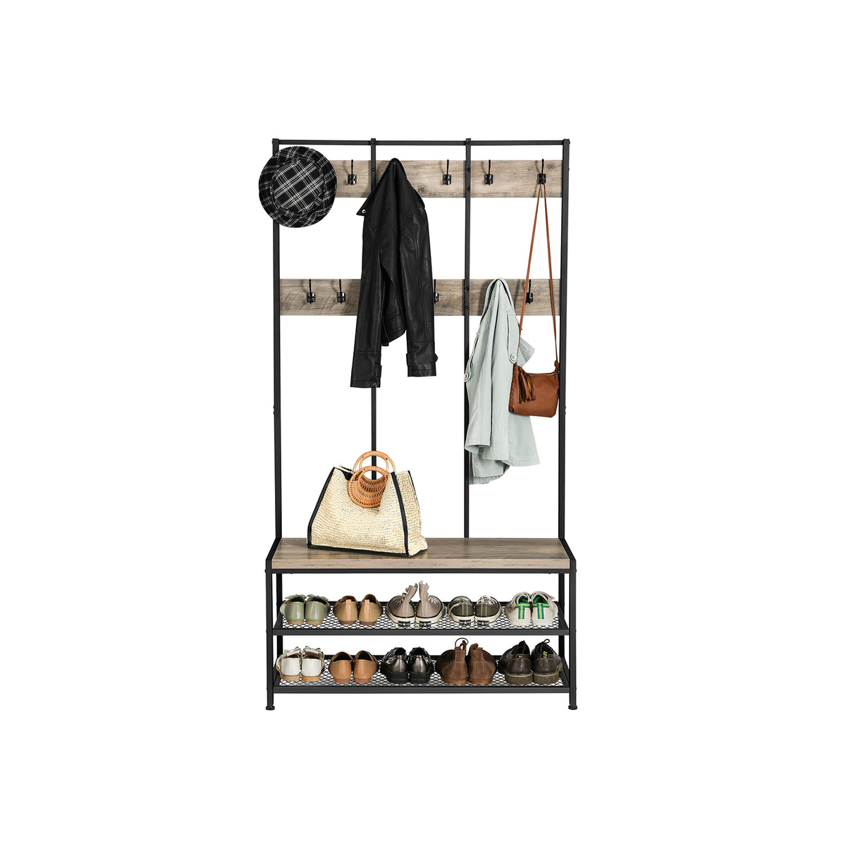 Grote kapstok met bank in greige-zwart 100 x 40 x 184 cm