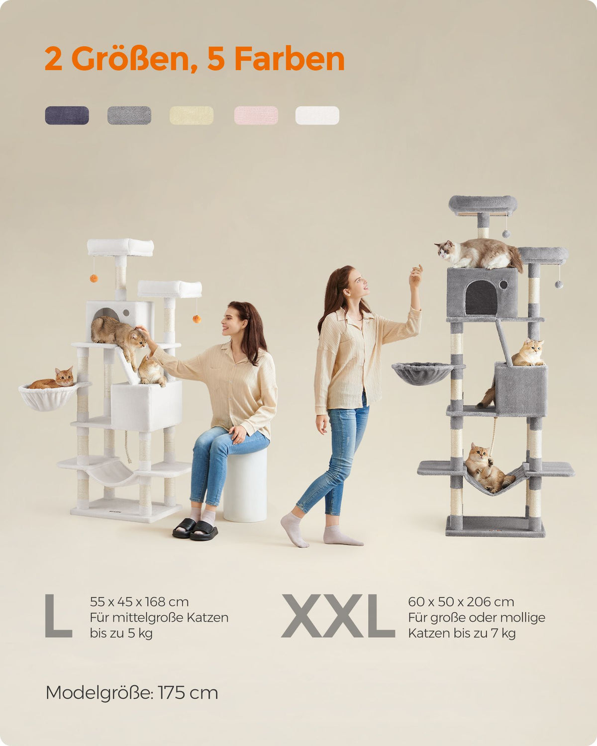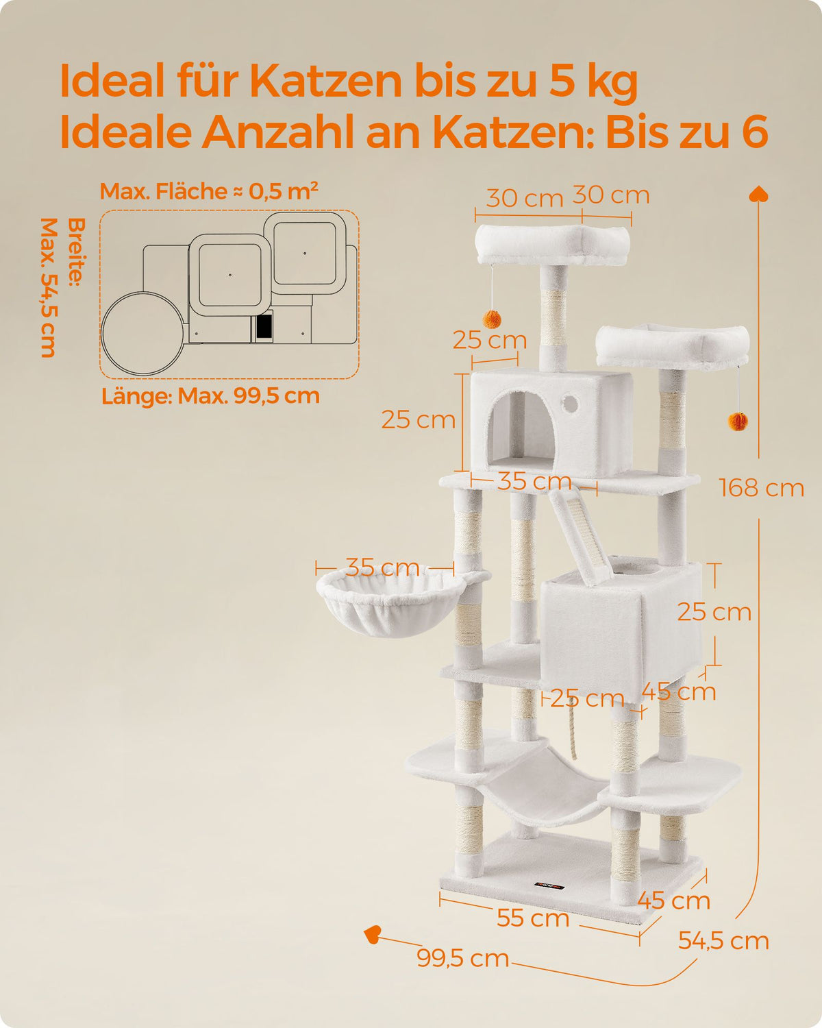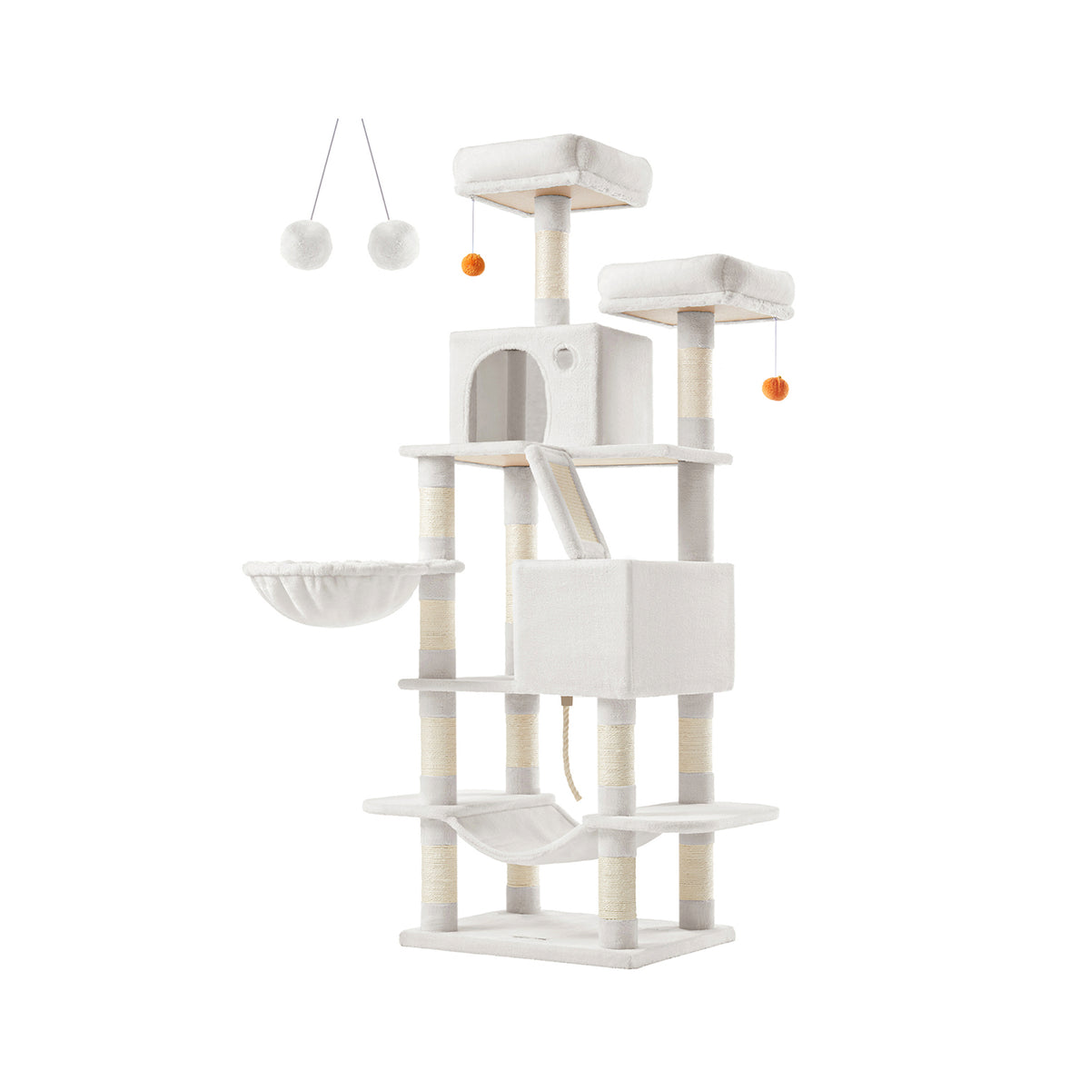 Grote krabpaal met 13 krabpalen, crèmewit 168 cm - B34PCT165T01
