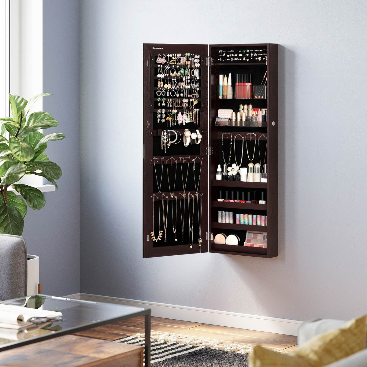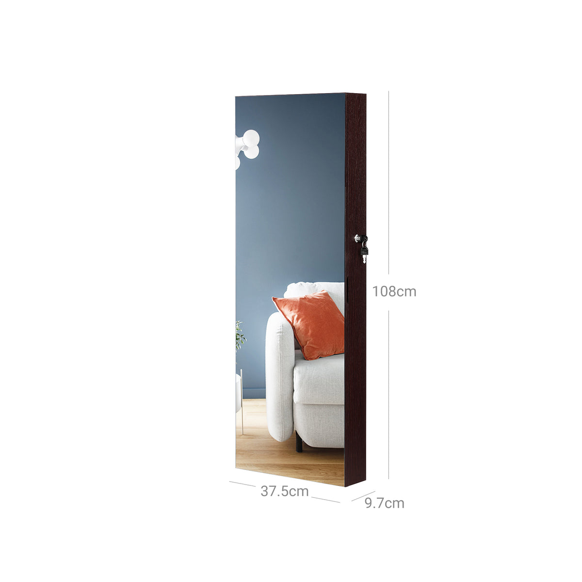 Hangende sieradenkast bruin 37,5 x 9,7 x 108 cm