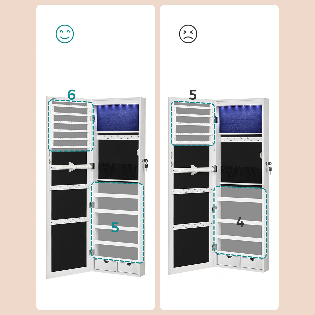 Hangende sieradenkast zonder lijst 3 x 108 cm