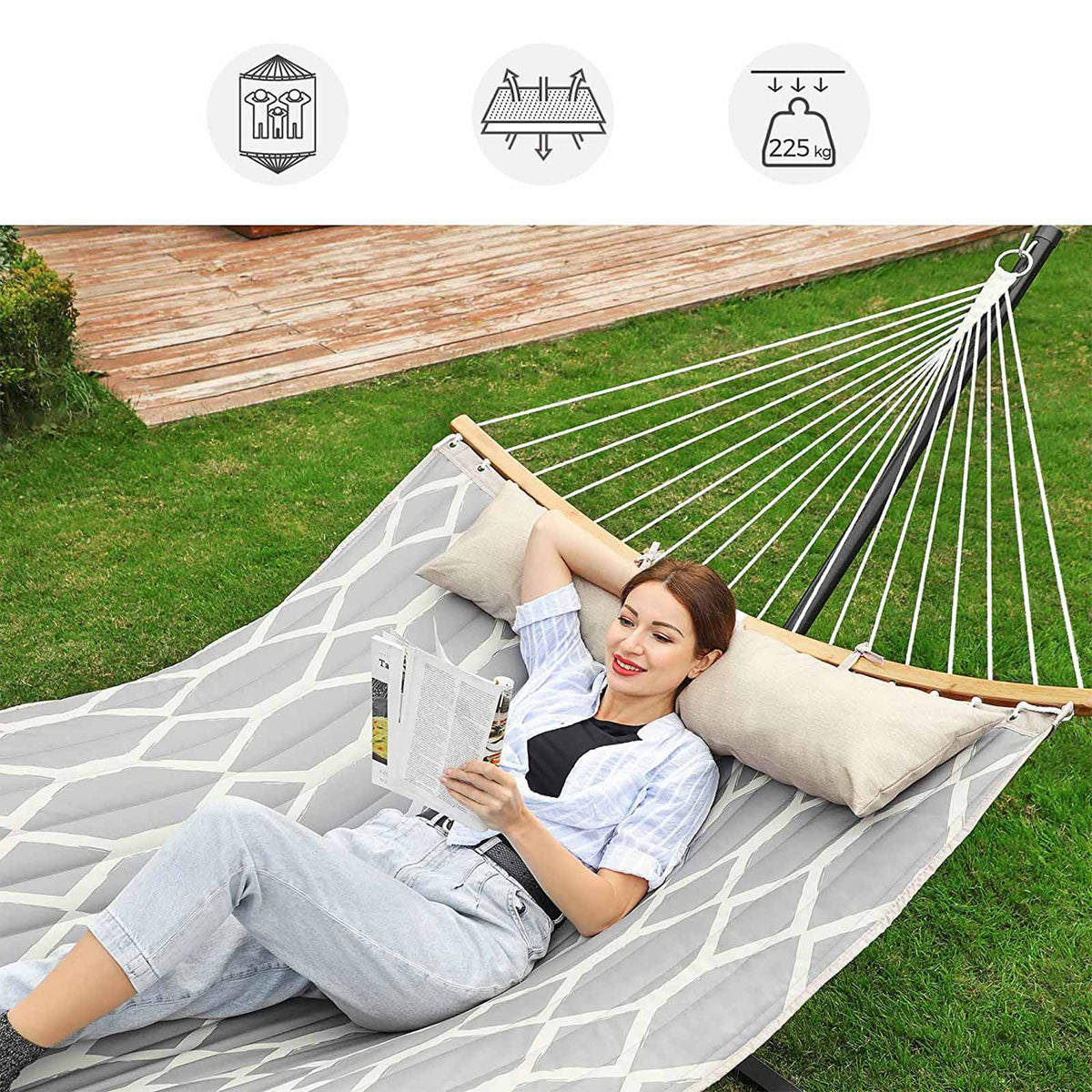 Hangmat grijs en beige diamanten 200 x 140 cm