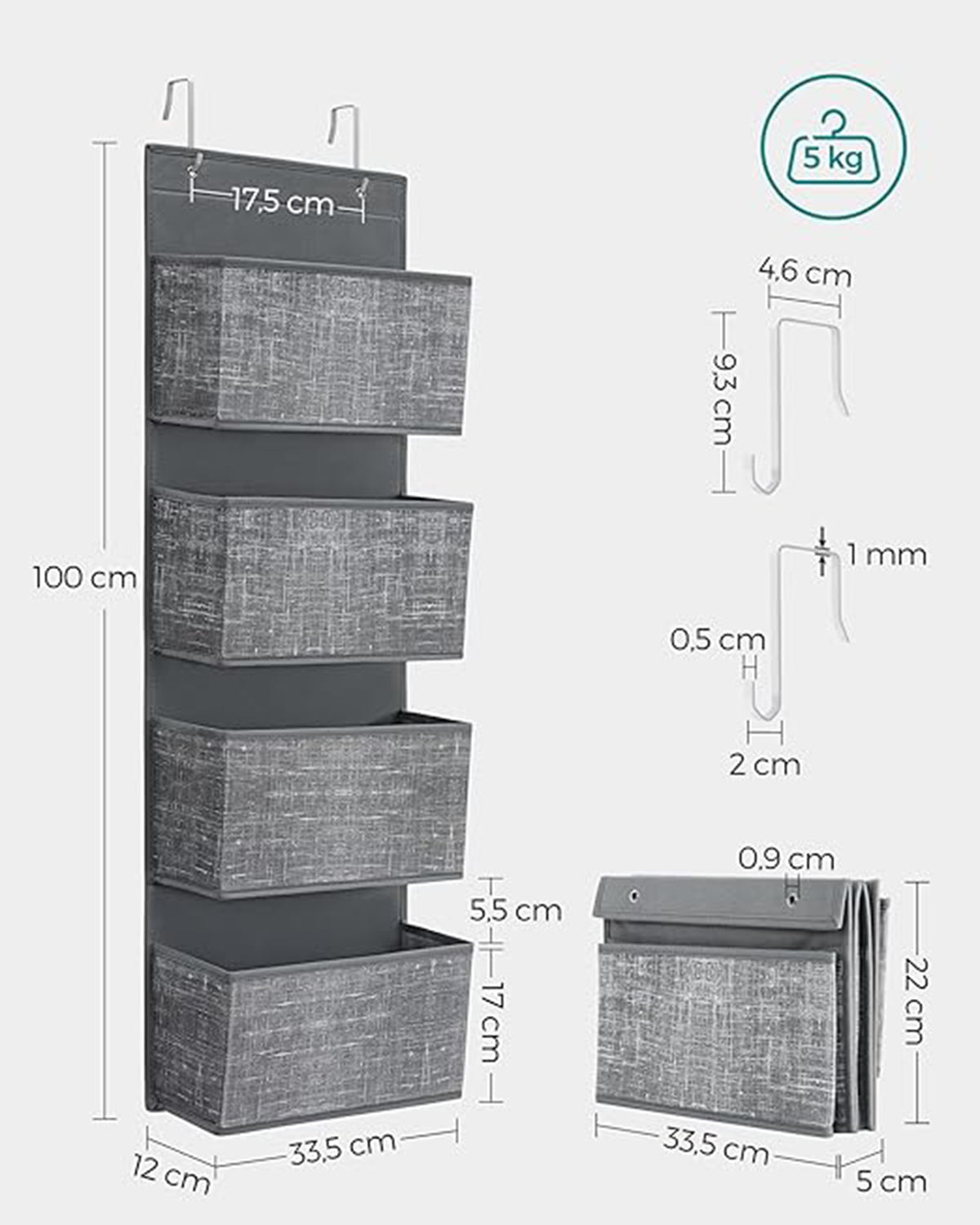 Hangplank met 4 vakken, gevlekt grijs 5 x 12 x 100 cm