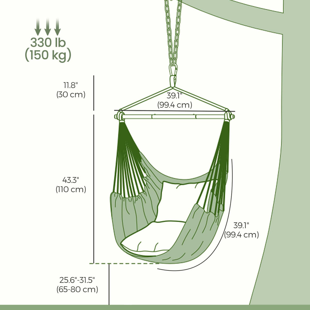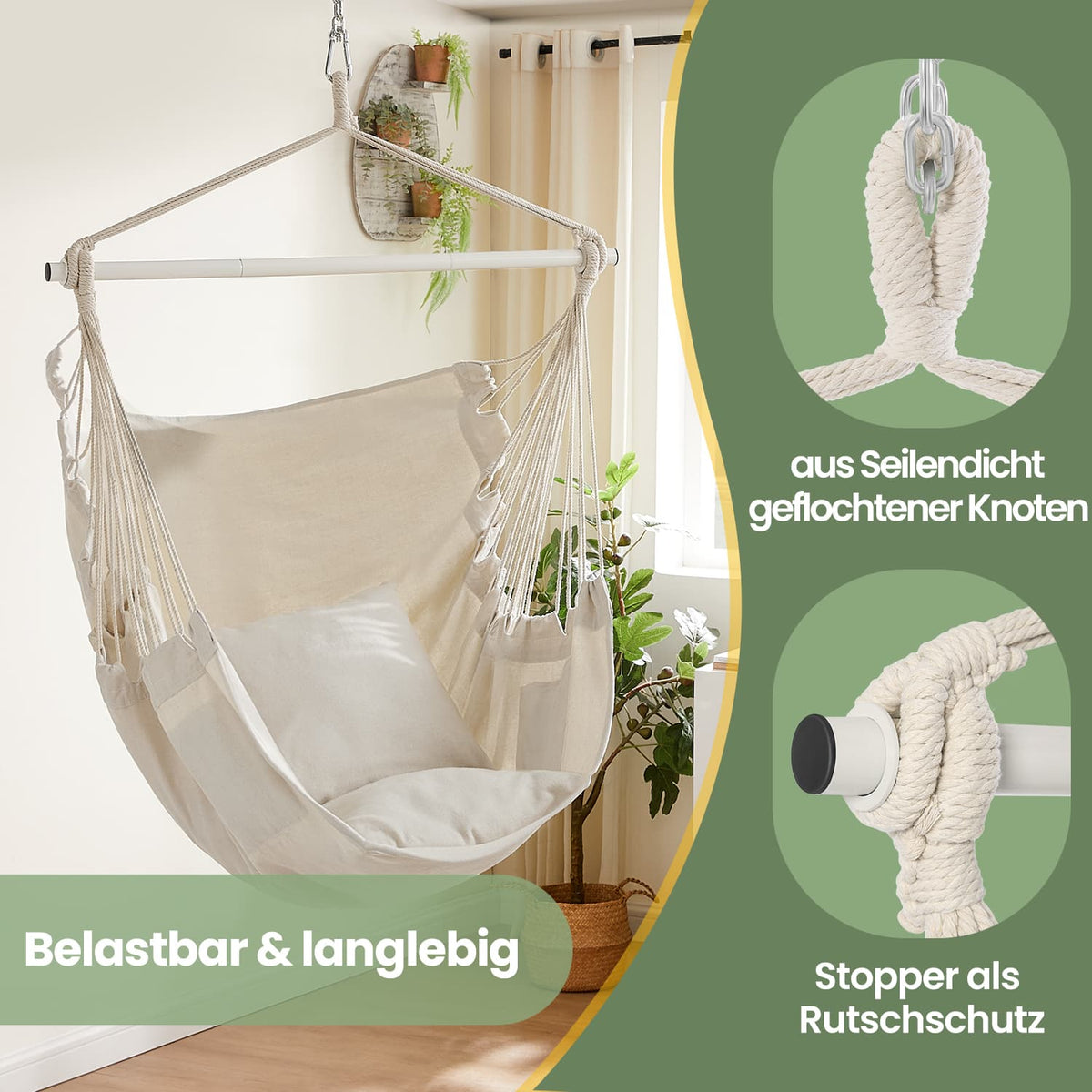 Hangstoel, hangschommel met 2 kussens, hangstoel 140 cm - GDCB35197M01