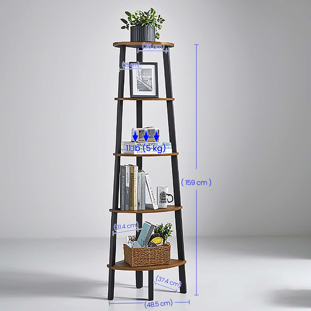 Hoekplank, boekenkast met 5 niveaus, ladderplank 32,5 x 159 x 34 cm