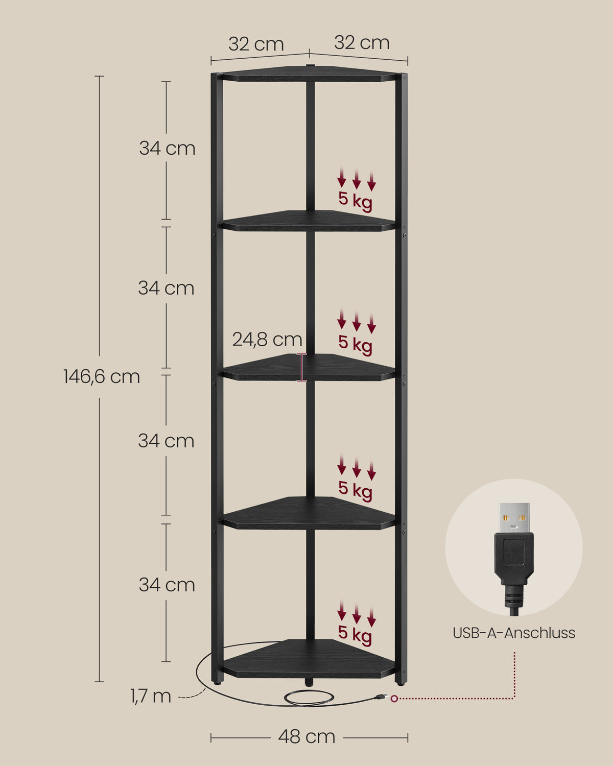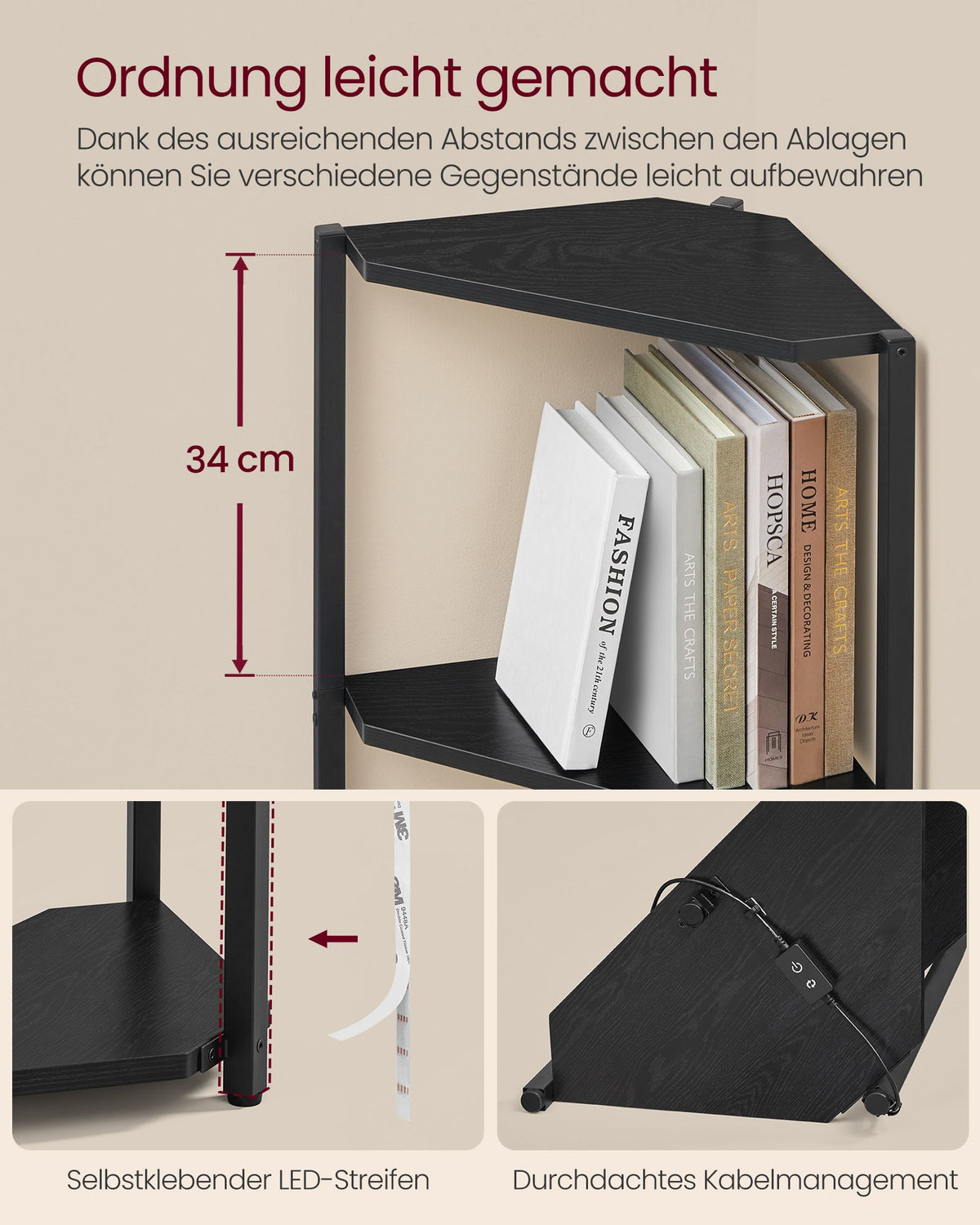 Hoekplank met 5 niveaus en LED-verlichting ebbenhoutzwart 6 cm