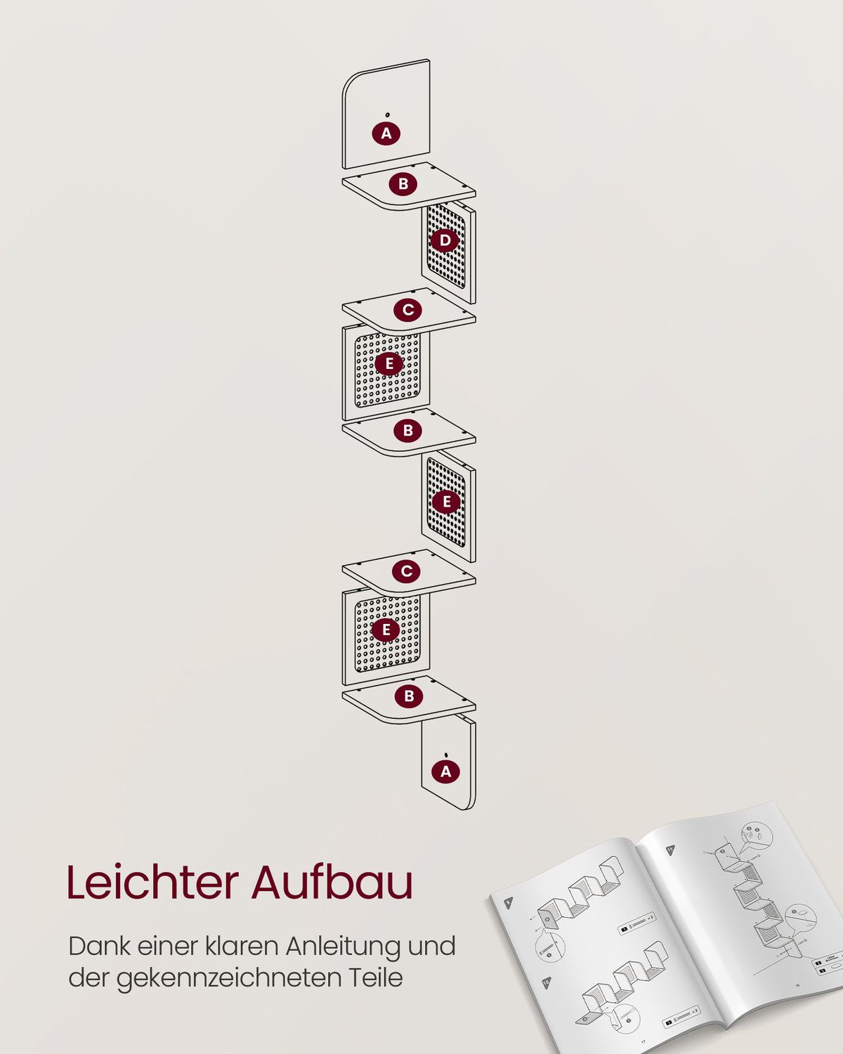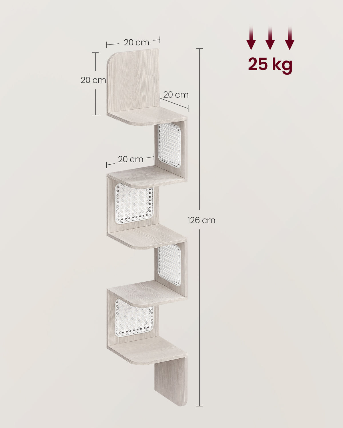 Hoekplank met 5 niveaus in zigzagvorm havermoutbeige 20 x 20 x 126 cm