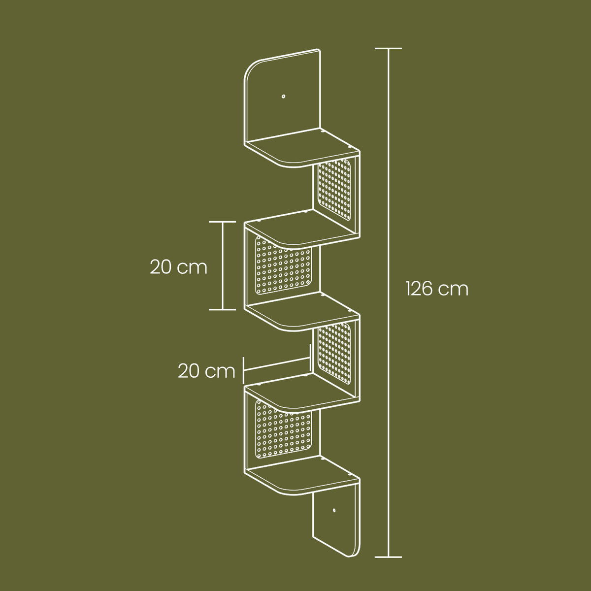 Hoekplank, wandplank 5 niveaus, zwevende plank 20 x 20 x 126 cm - LLSB35582B21