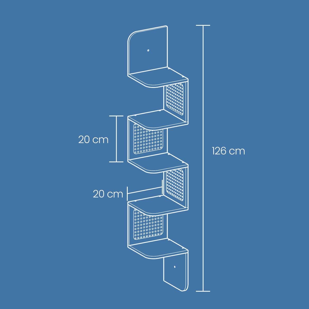Hoekplank, wandplank 5 niveaus, zwevende plank 20 x 20 x 126 cm - LLSB35582K66