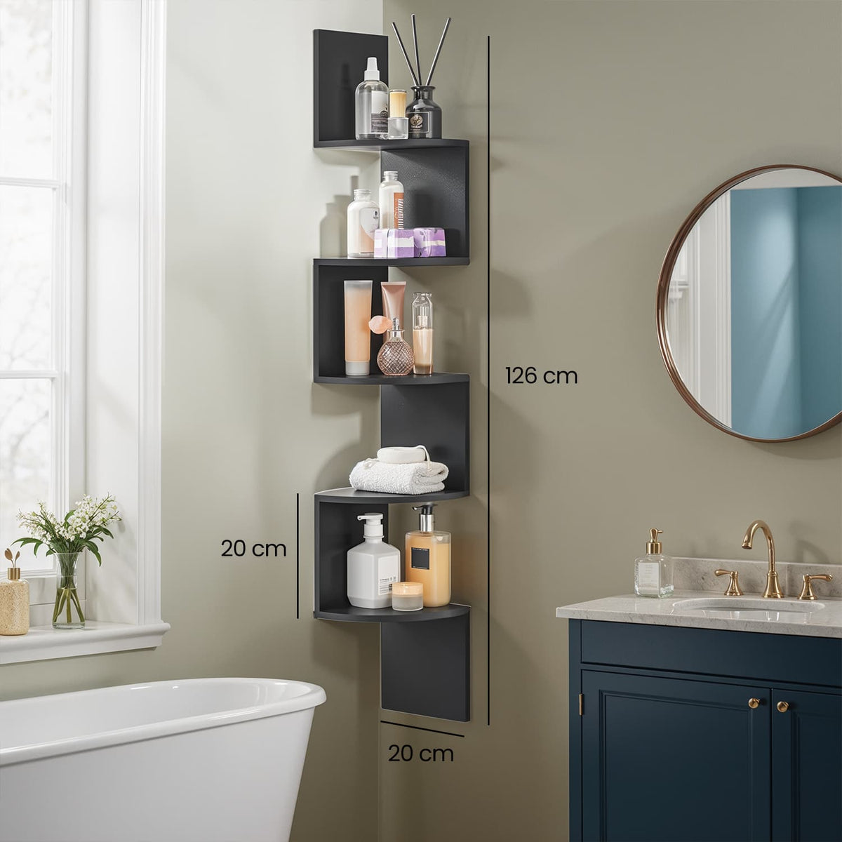 Hoekplank, wandplank 5 niveaus, zwevende plank voor boeken 20 x 20 x 127,5 cm - LBCB3520BK
