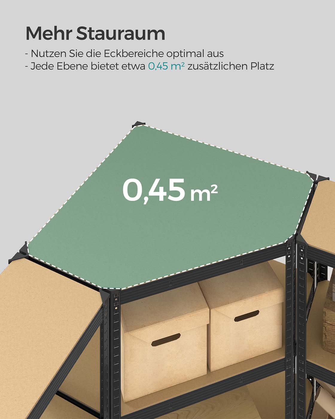 Hoekplankenset 5 niveaus draagvermogen tot 2625 kg 160 x 160 x 180 cm