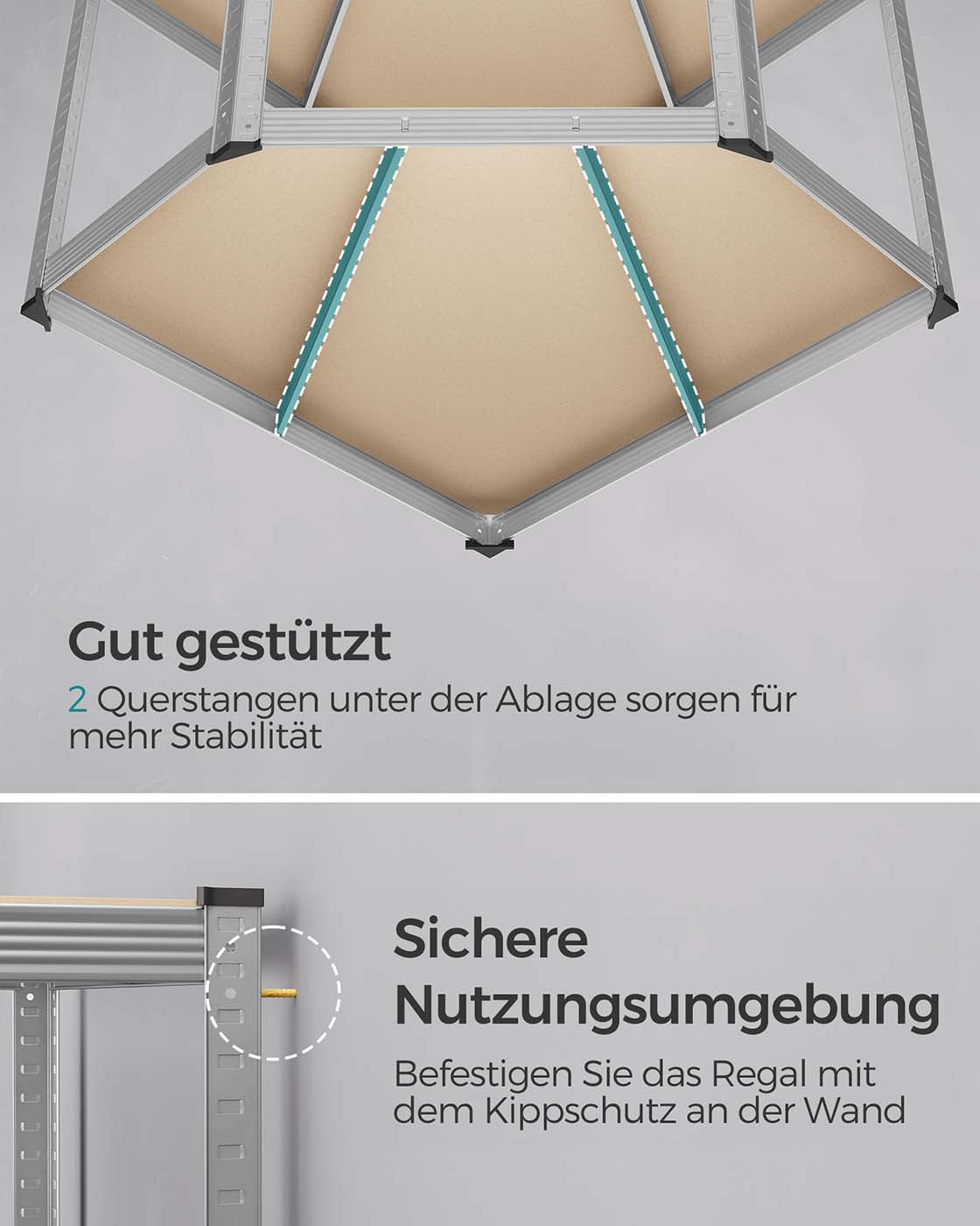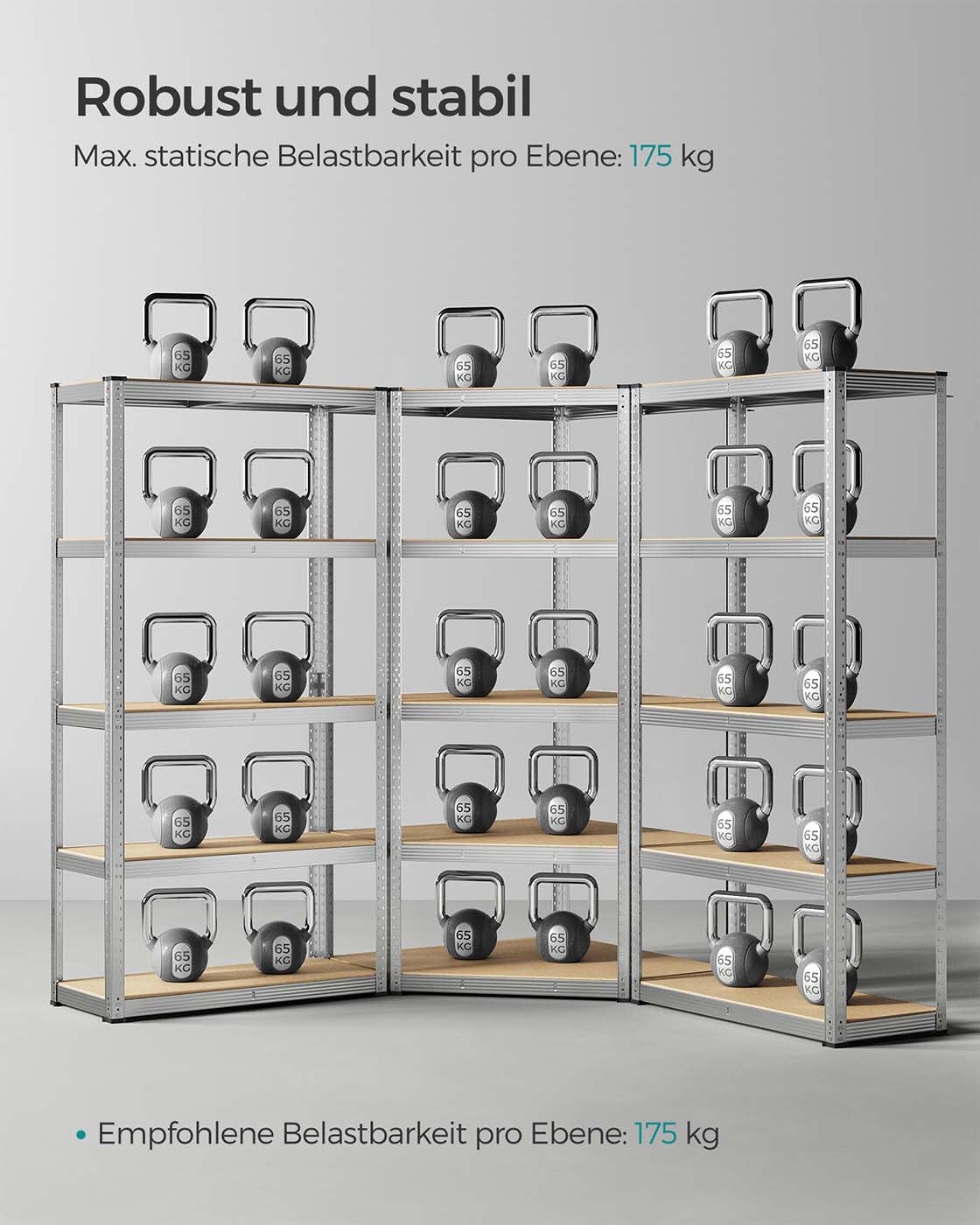 Hoekplankenset met 5 niveaus, draagvermogen tot 2625 kg 160 x 160 x 180 cm
