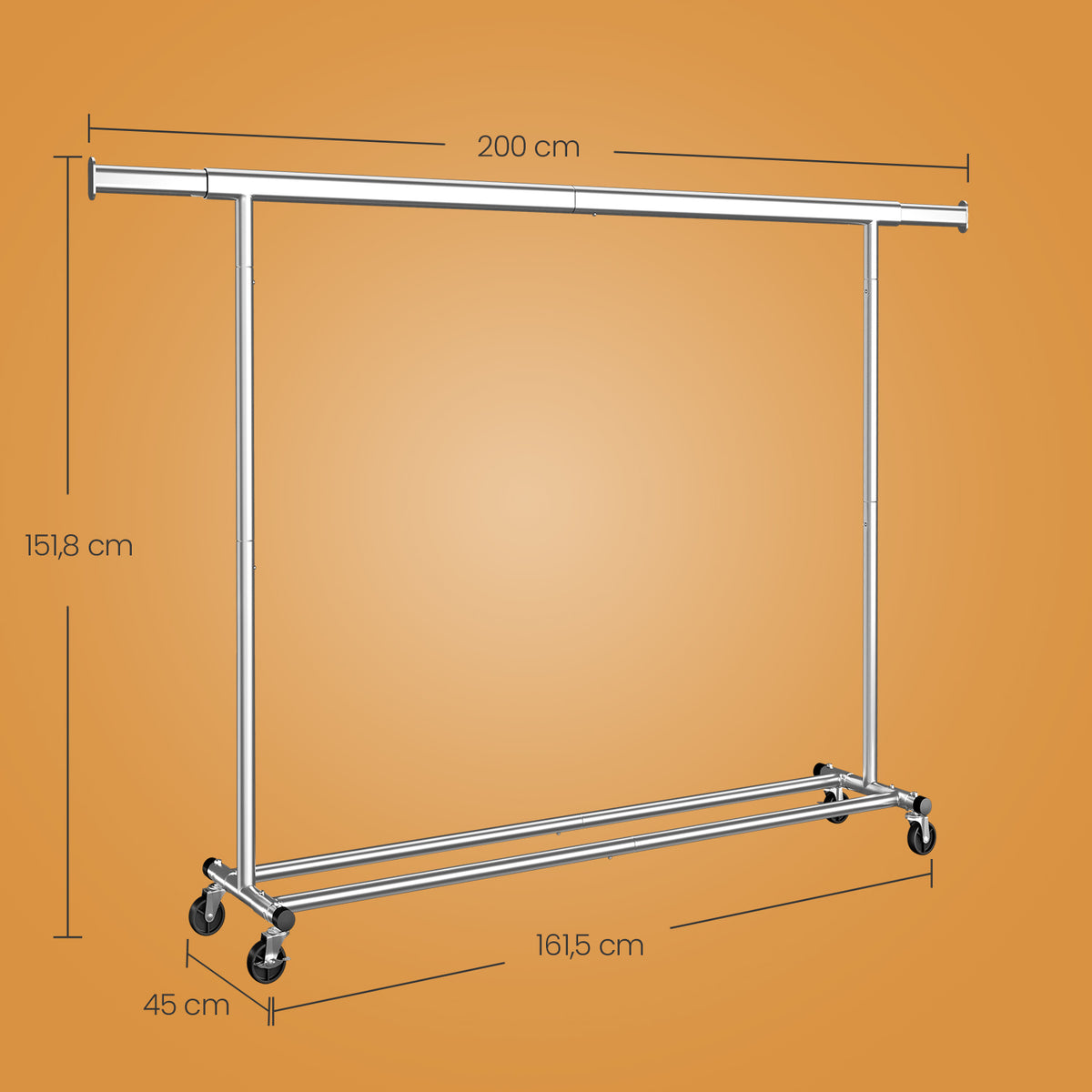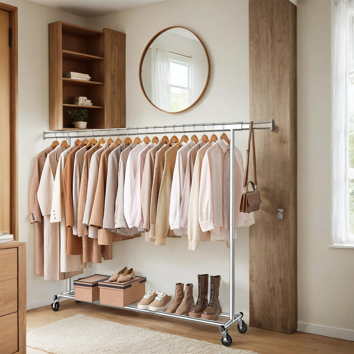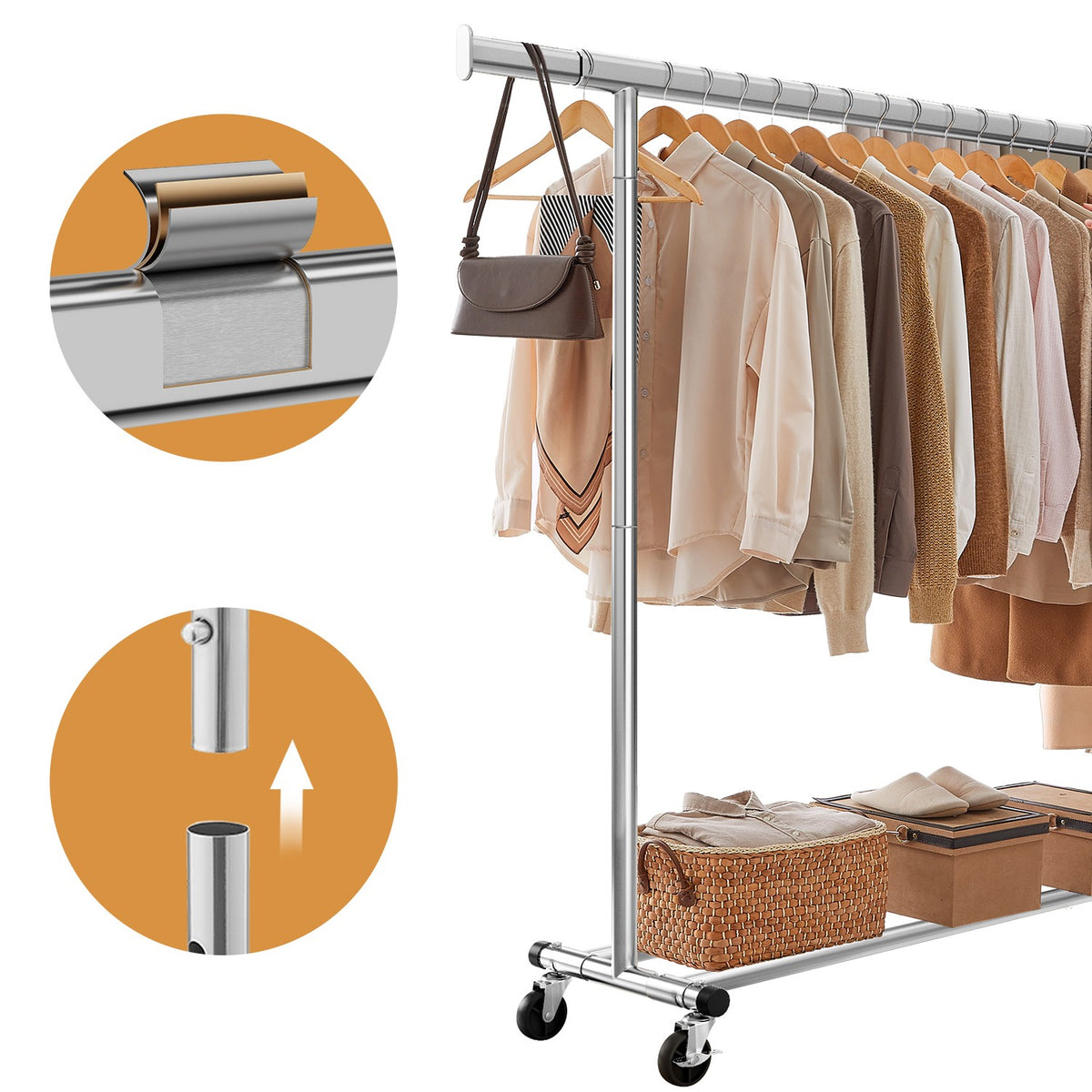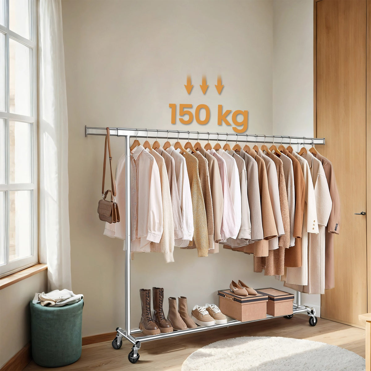 Homestorecity Kledingrek op wielen, robuuste kapstok, uitschuifbare kledingstang 5 cm