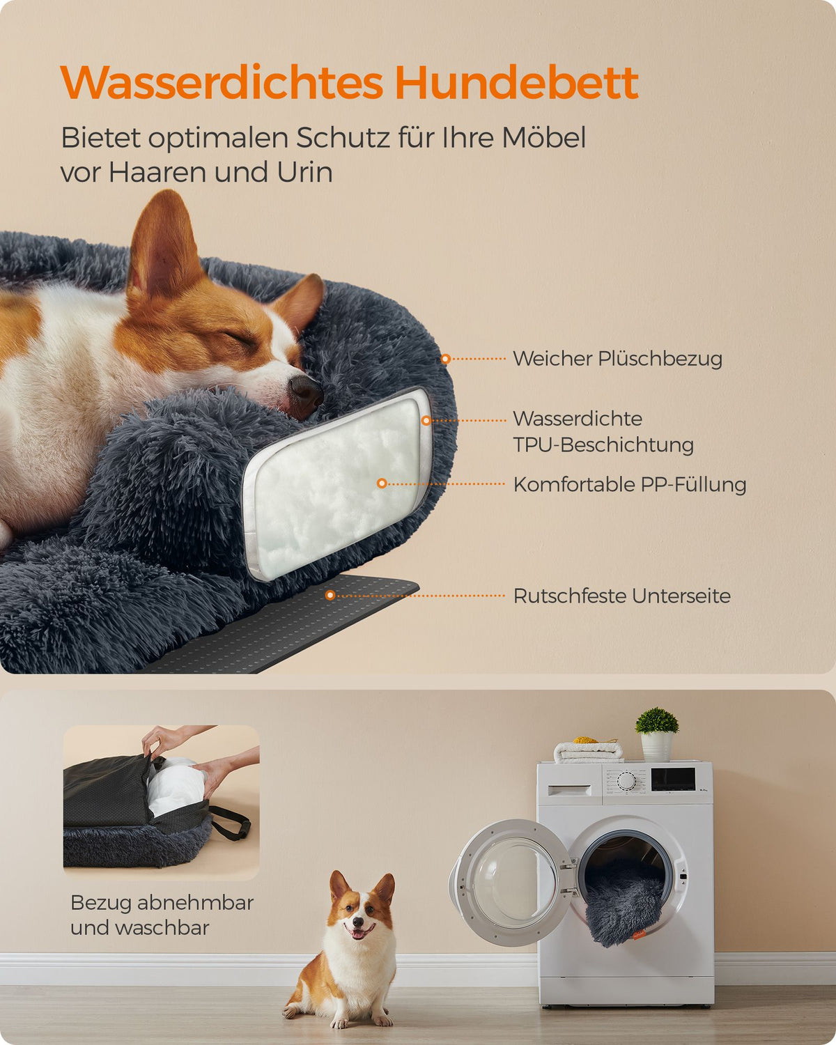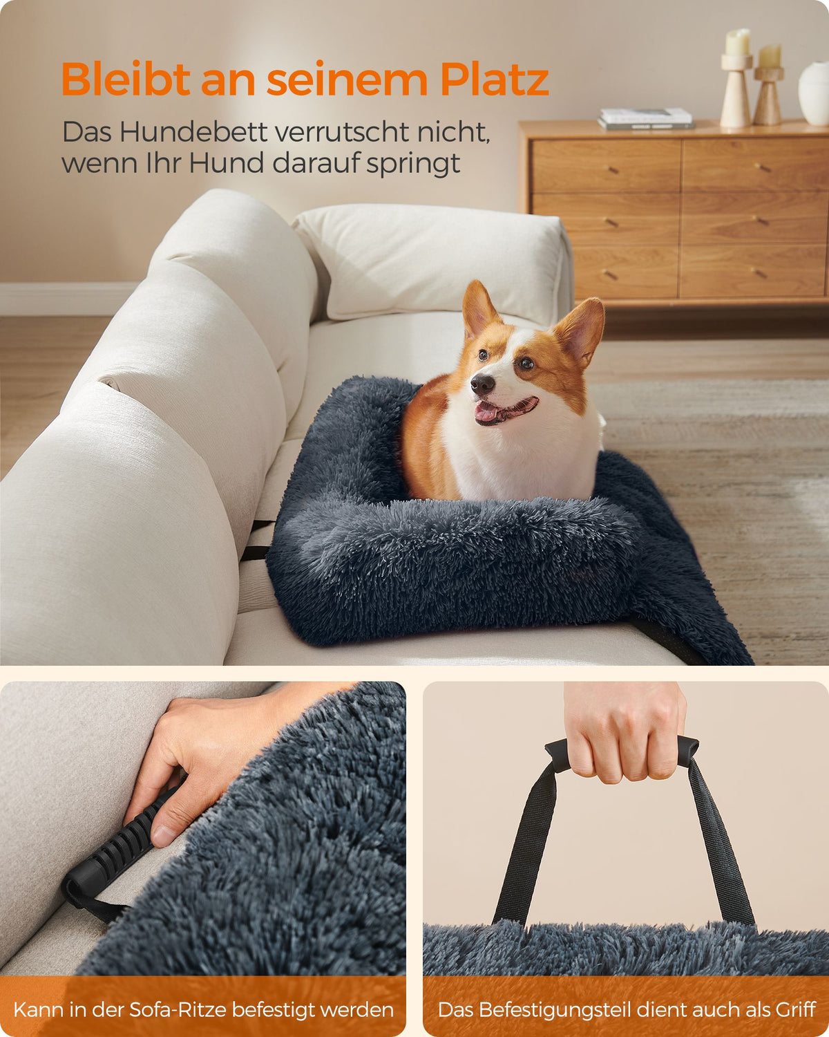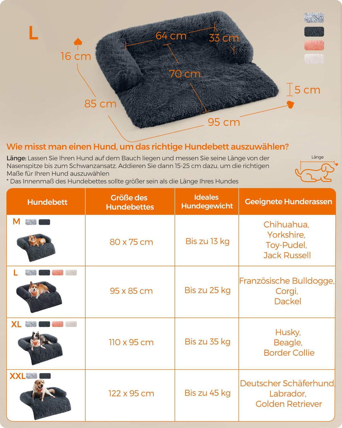 Hondenbed L pluche 95 x 85 x 16 cm donkergrijs