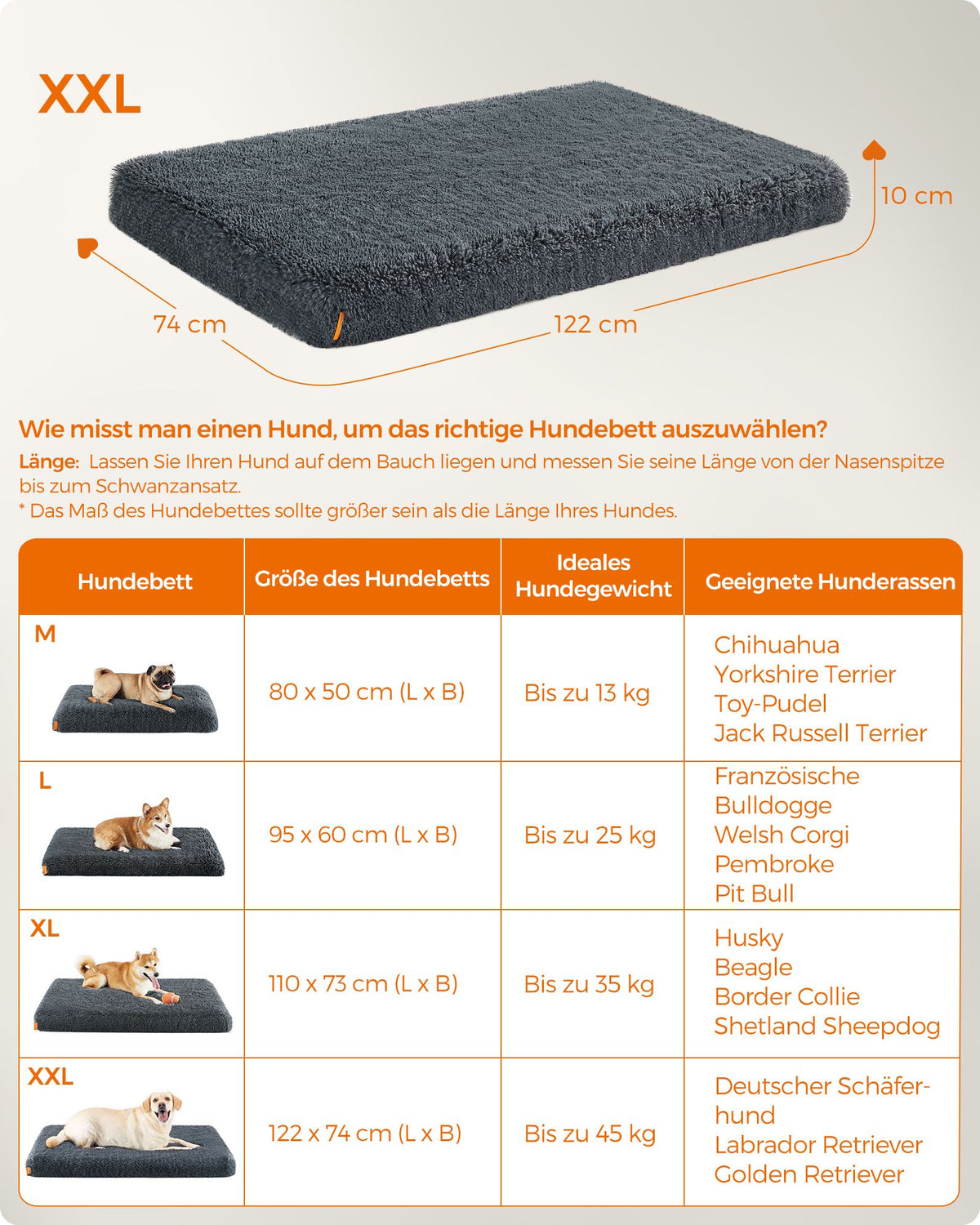 Hondenbed pluche 122 x 74 x 10 cm donkergrijs XXL