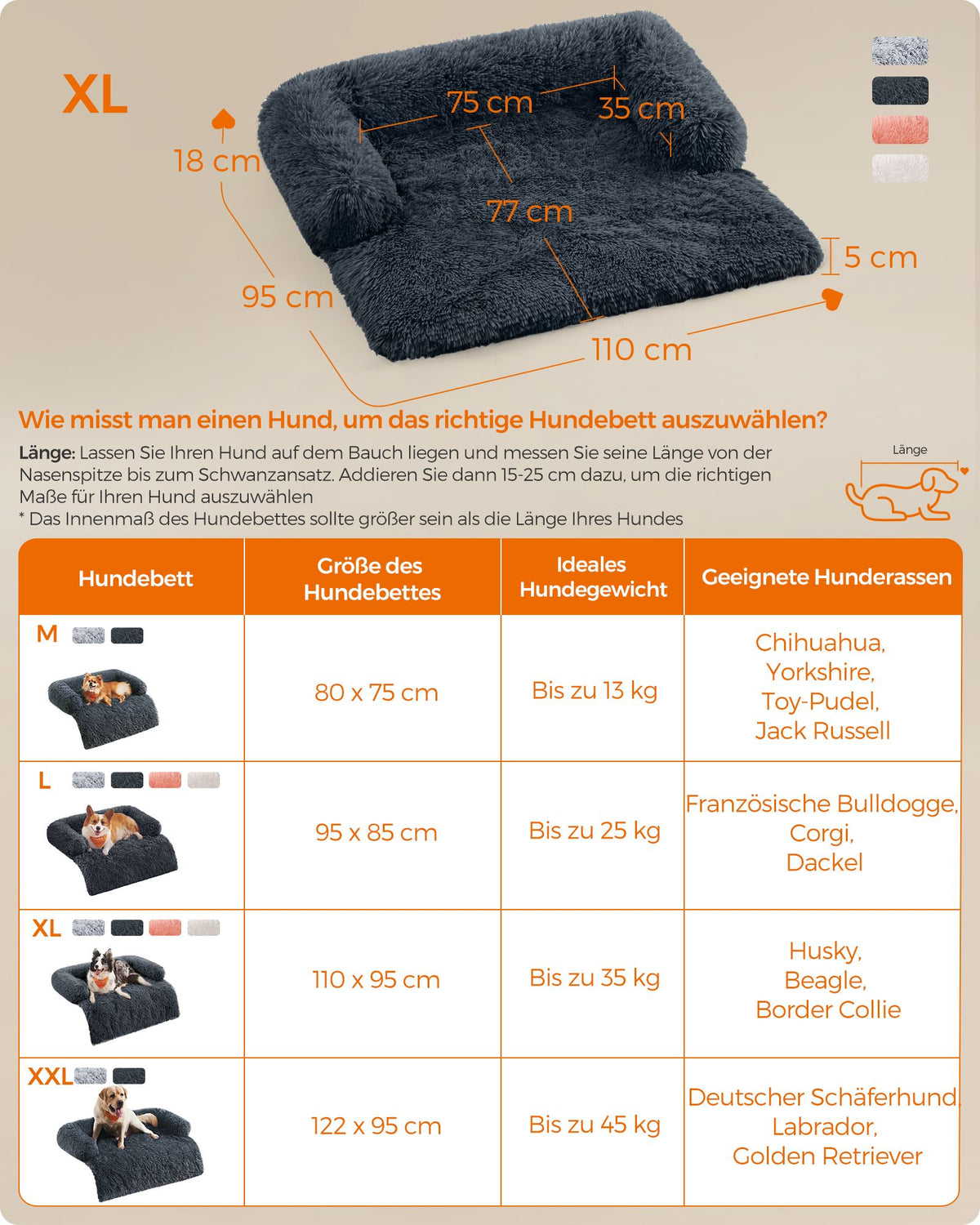 Hondenbed XL pluche 110 x 95 x 18 cm donkergrijs
