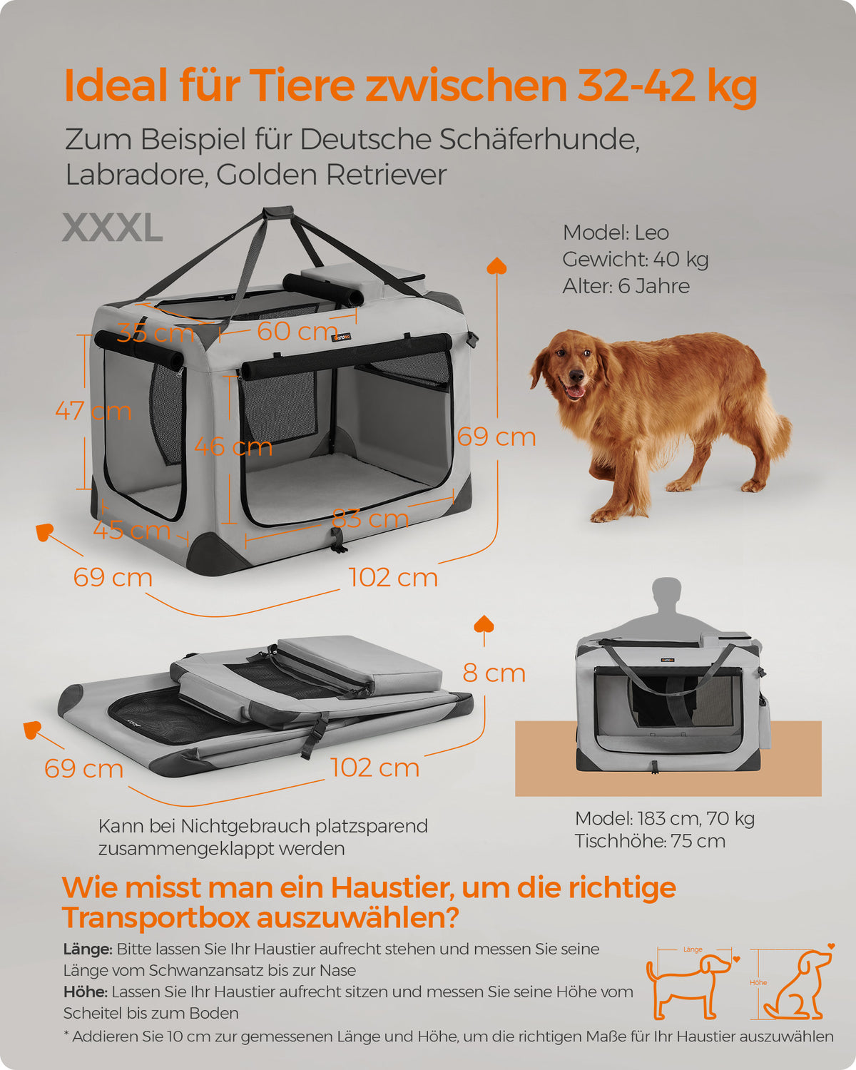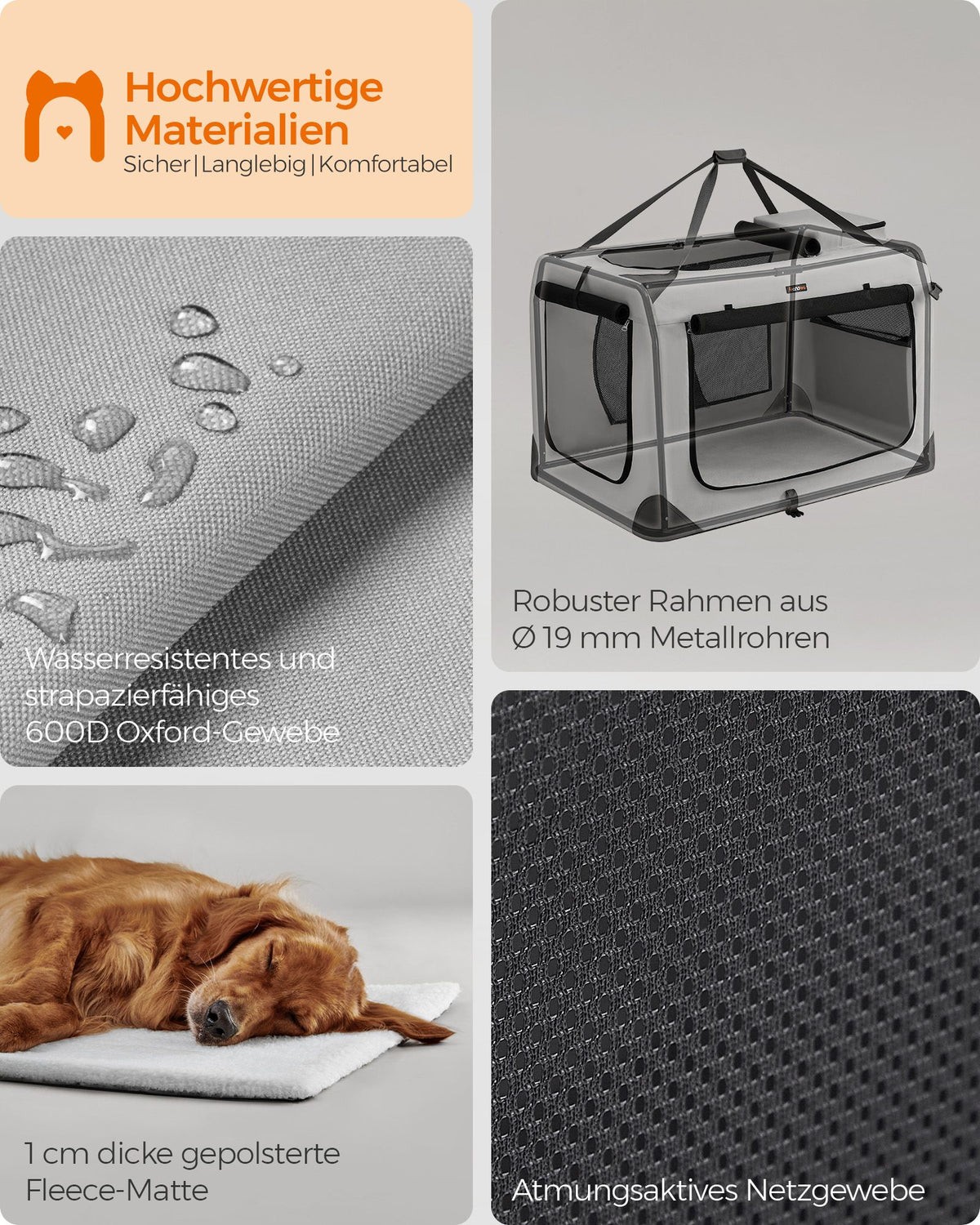 Hondenbench XXXL van Oxford-stof met handgrepen 60 x 40 x 40 cm