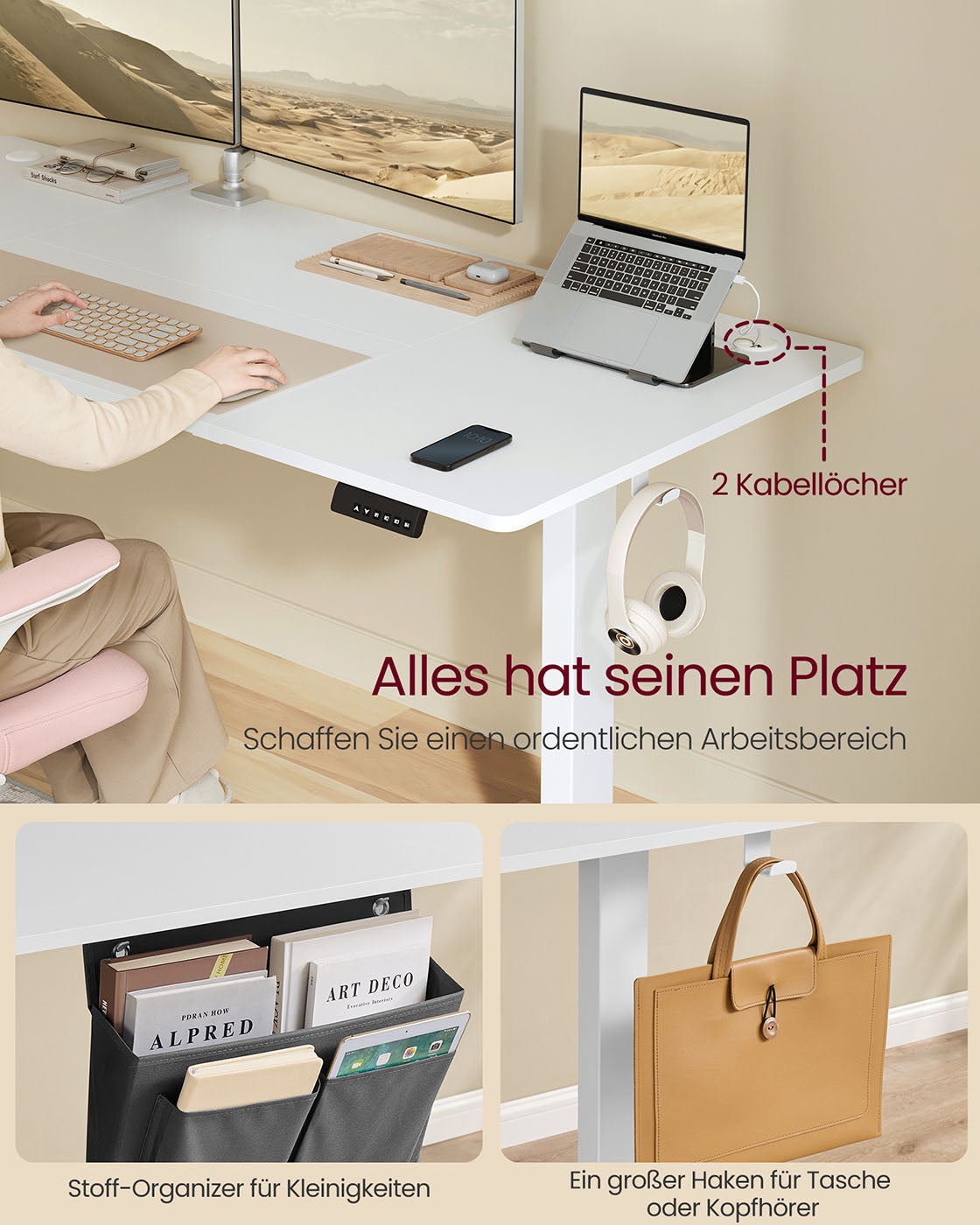 Hoogteverstelbaar bureau elektrisch 180 x 80 cm wolkenwit
