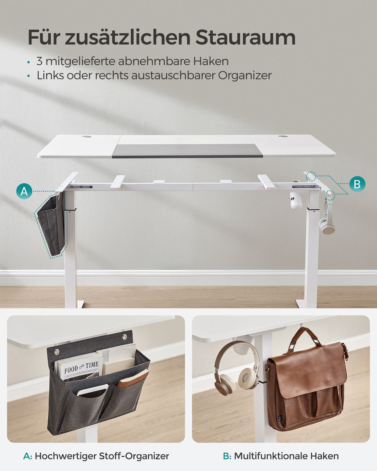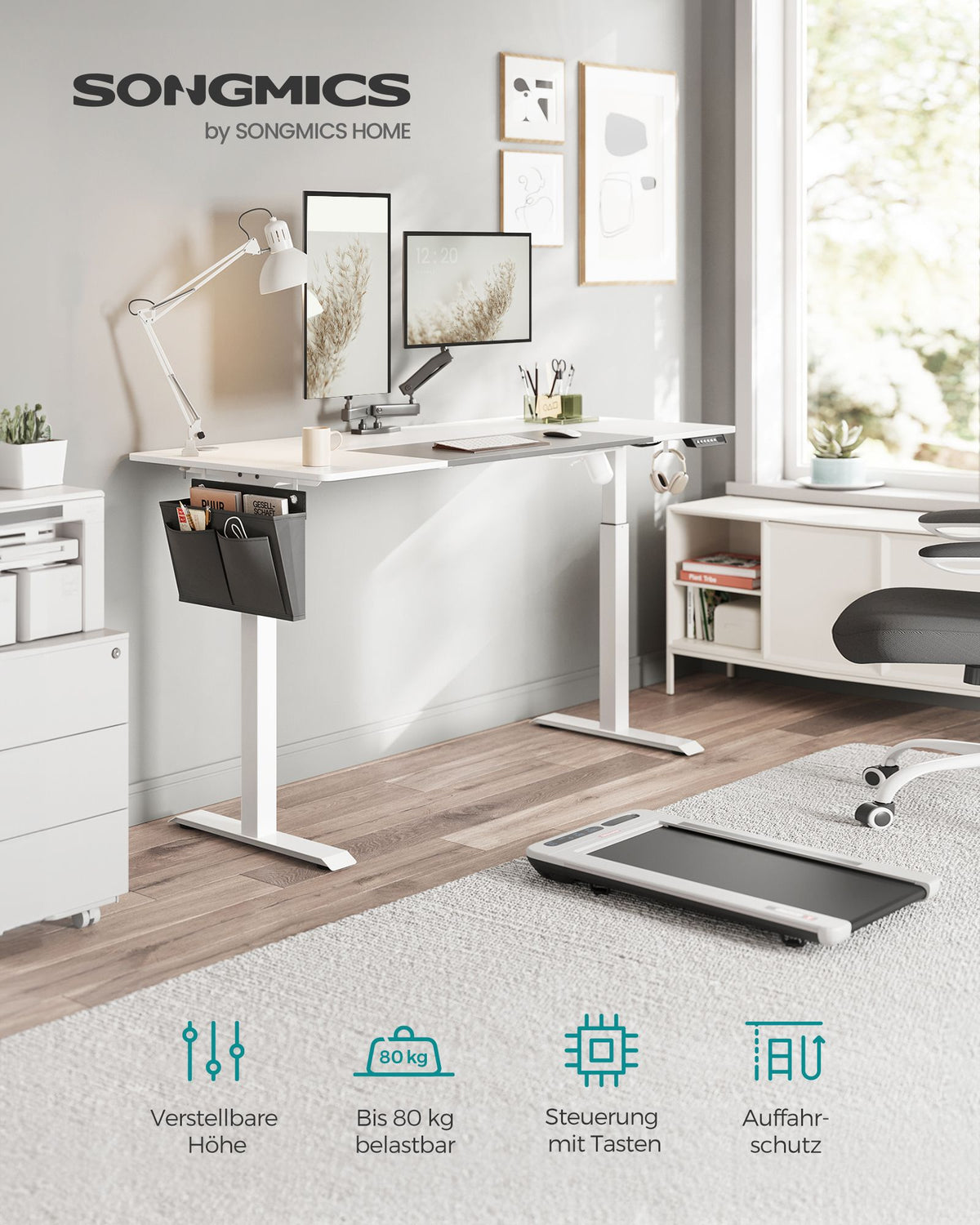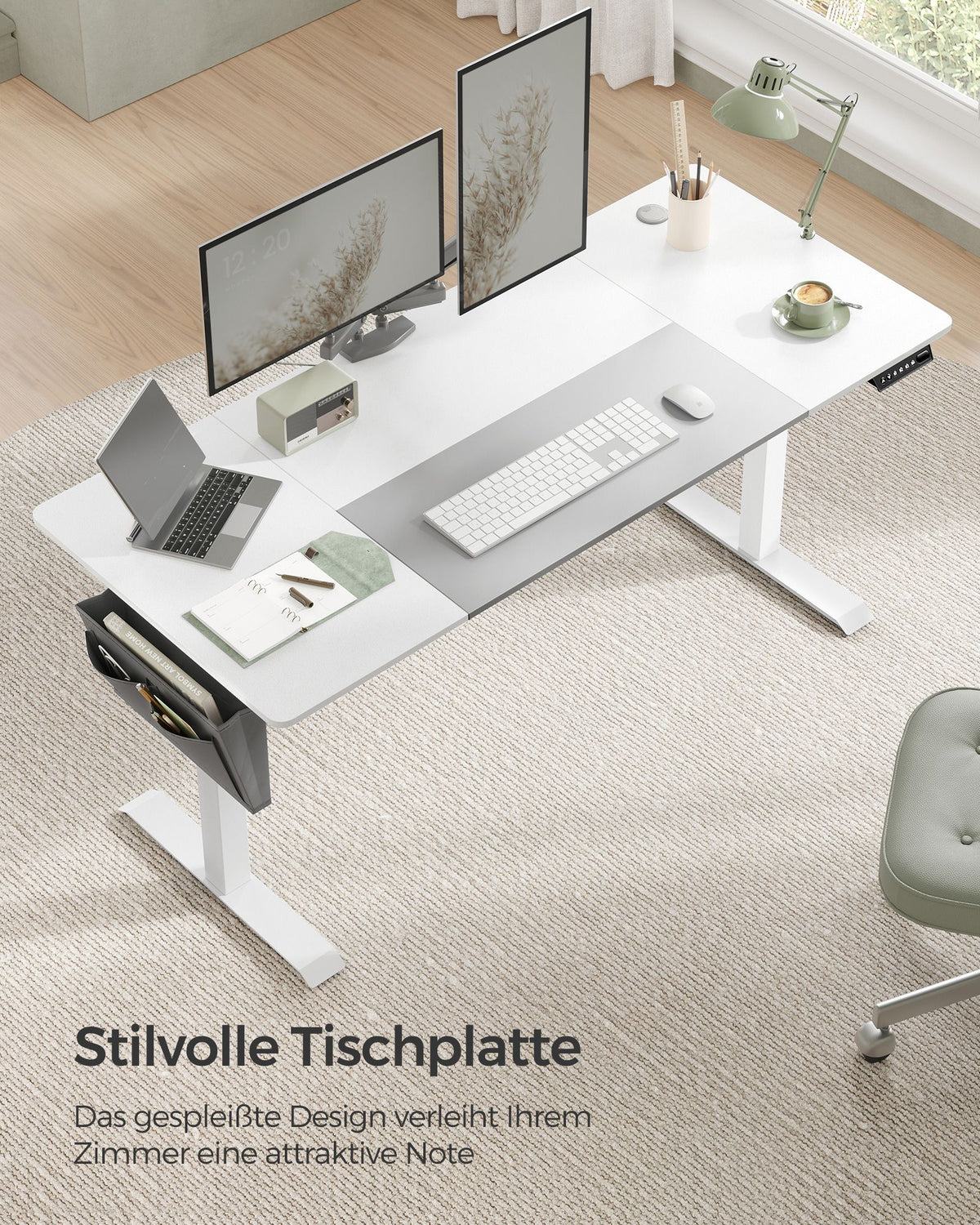 Hoogteverstelbaar bureau elektrisch basic wit-duifgrijs 5 cm - B34LSD026W02