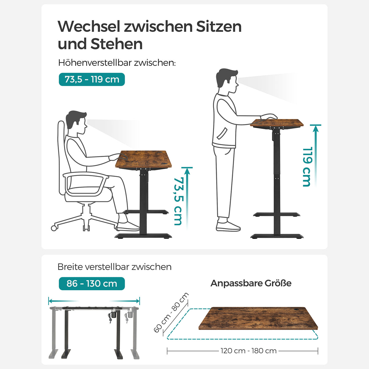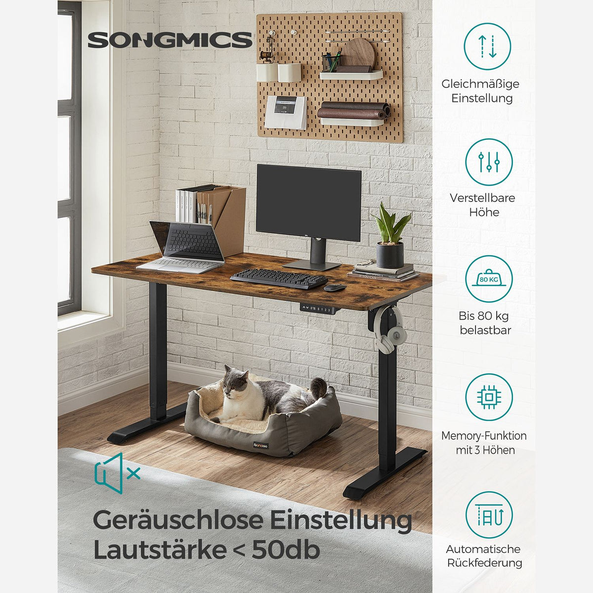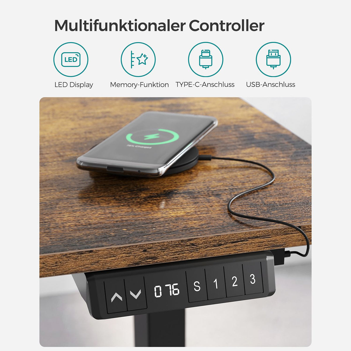 Hoogteverstelbaar bureau met geheugenfunctie 70 x 140 cm