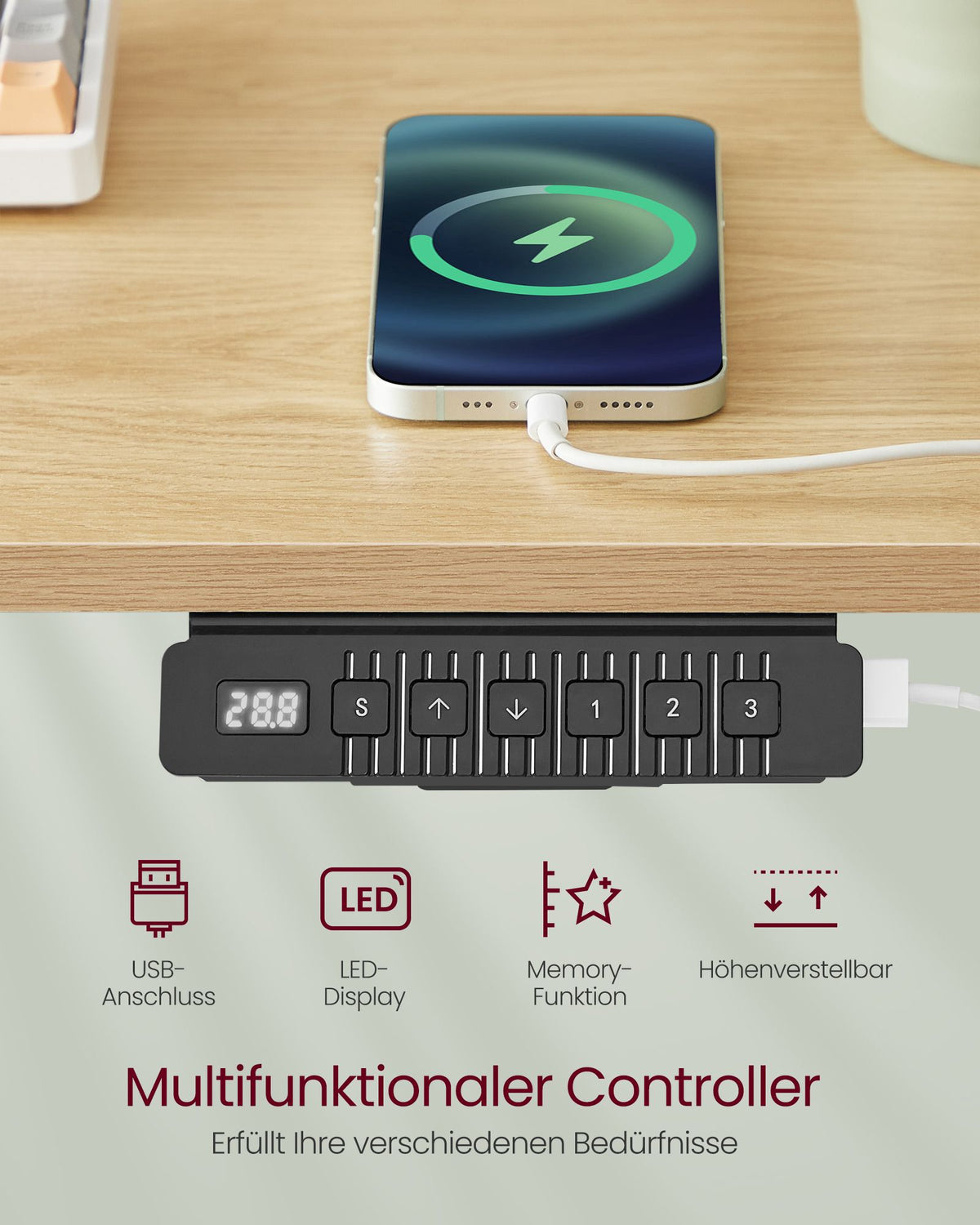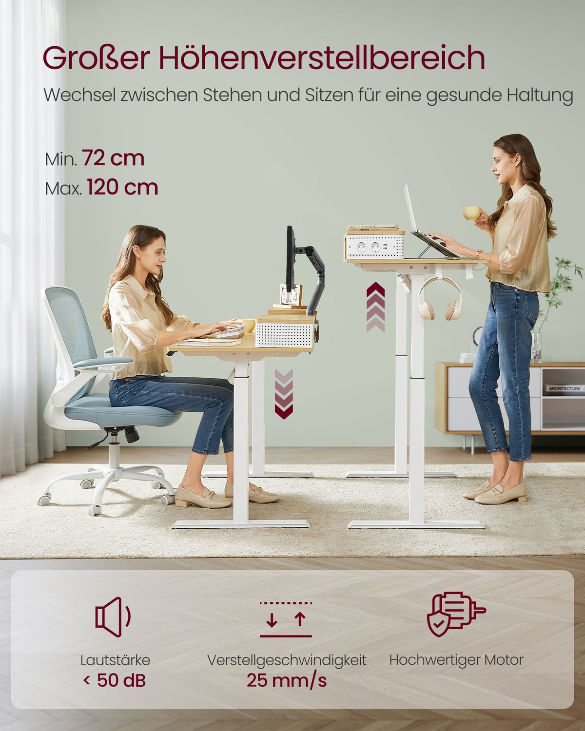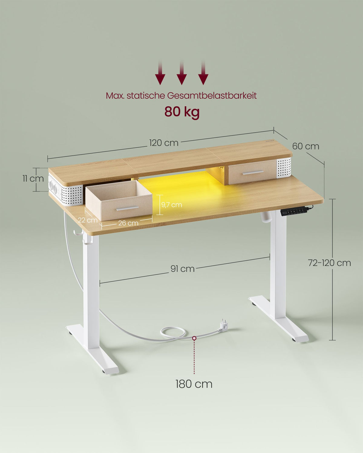 Hoogteverstelbaar en elektrisch bureau 60 x 120 x (72-120) cm