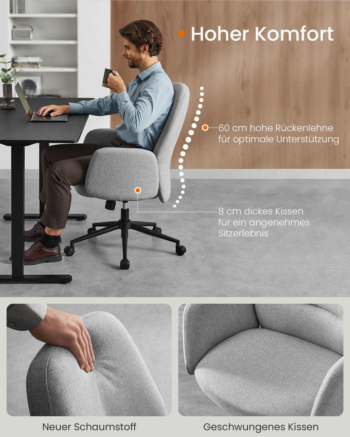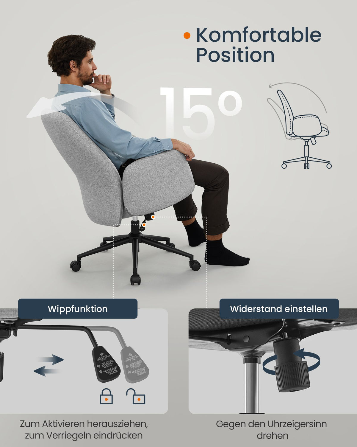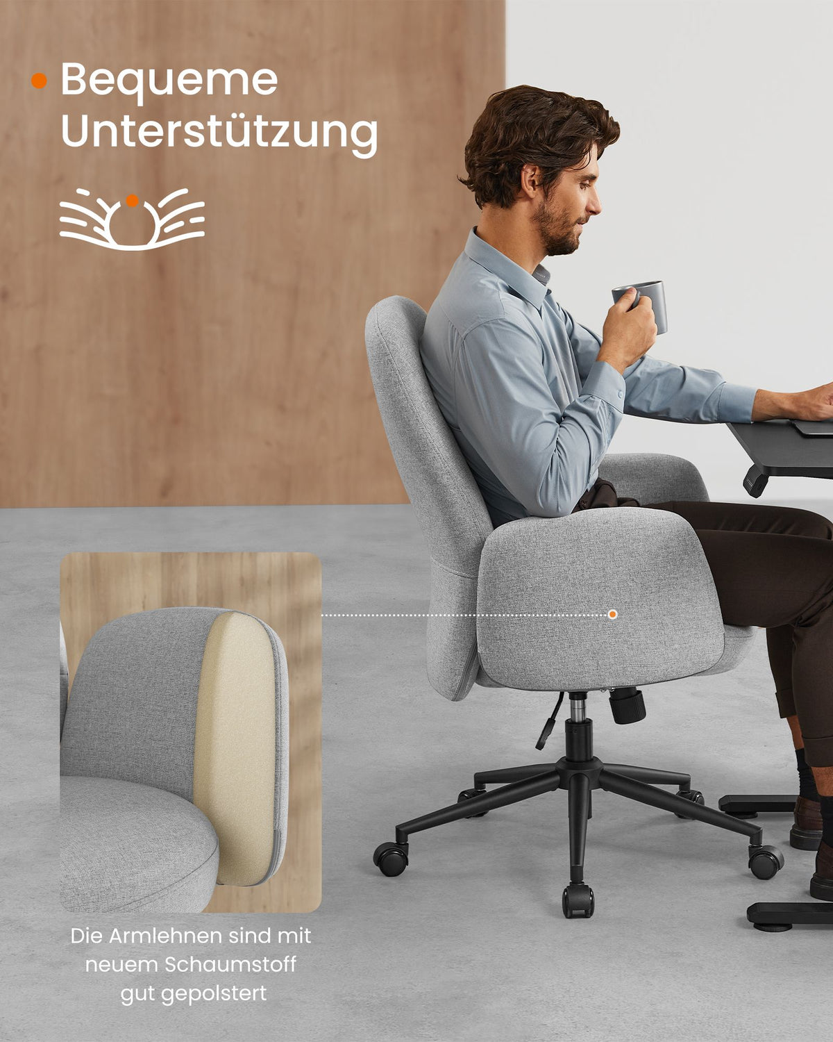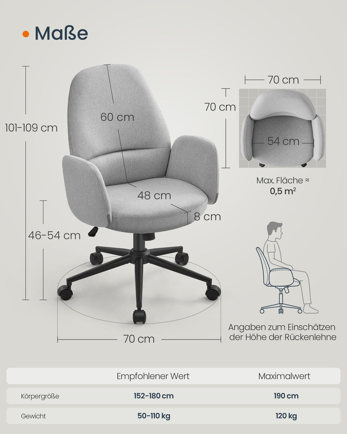 Hoogteverstelbare draaistoel met armleuningen, duifgrijs 54 cm