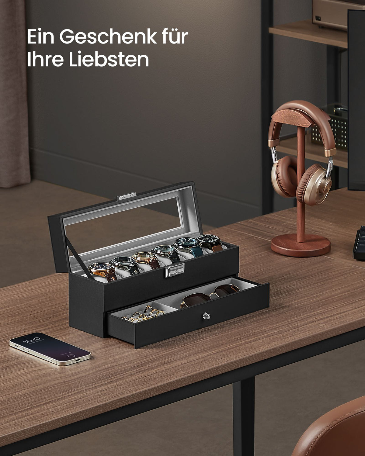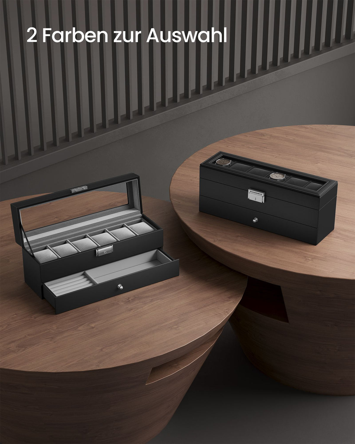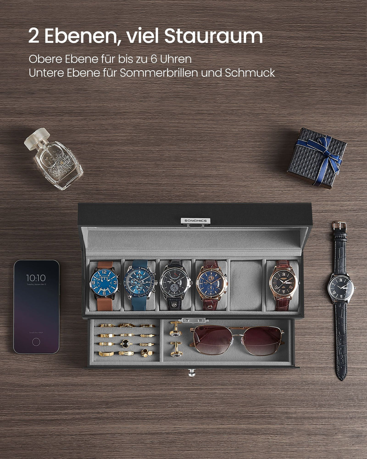 Horlogebox met 2 lagen PU-deksel en binnenvoering in grijs 5 cm